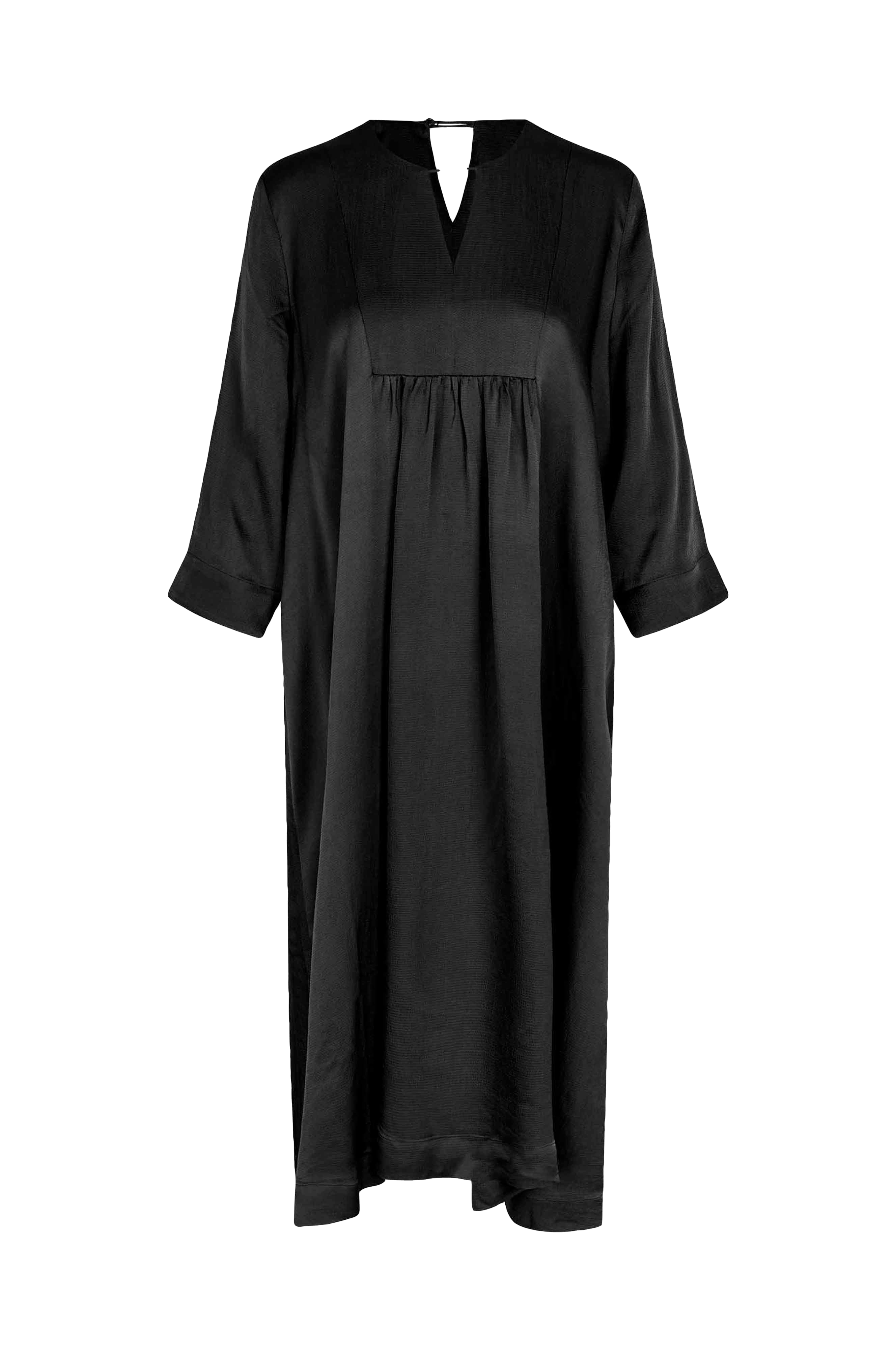 • Model med svaj med meget vidde• Rund hals med ventilation foran og bagpå og knap i nakken• Indlæg med samling på brystet• Lige, 3/4 langt ærme med kort slids ved ærmeafslutningerne• Sidelommer• Længde: 113 cm i størrelse M