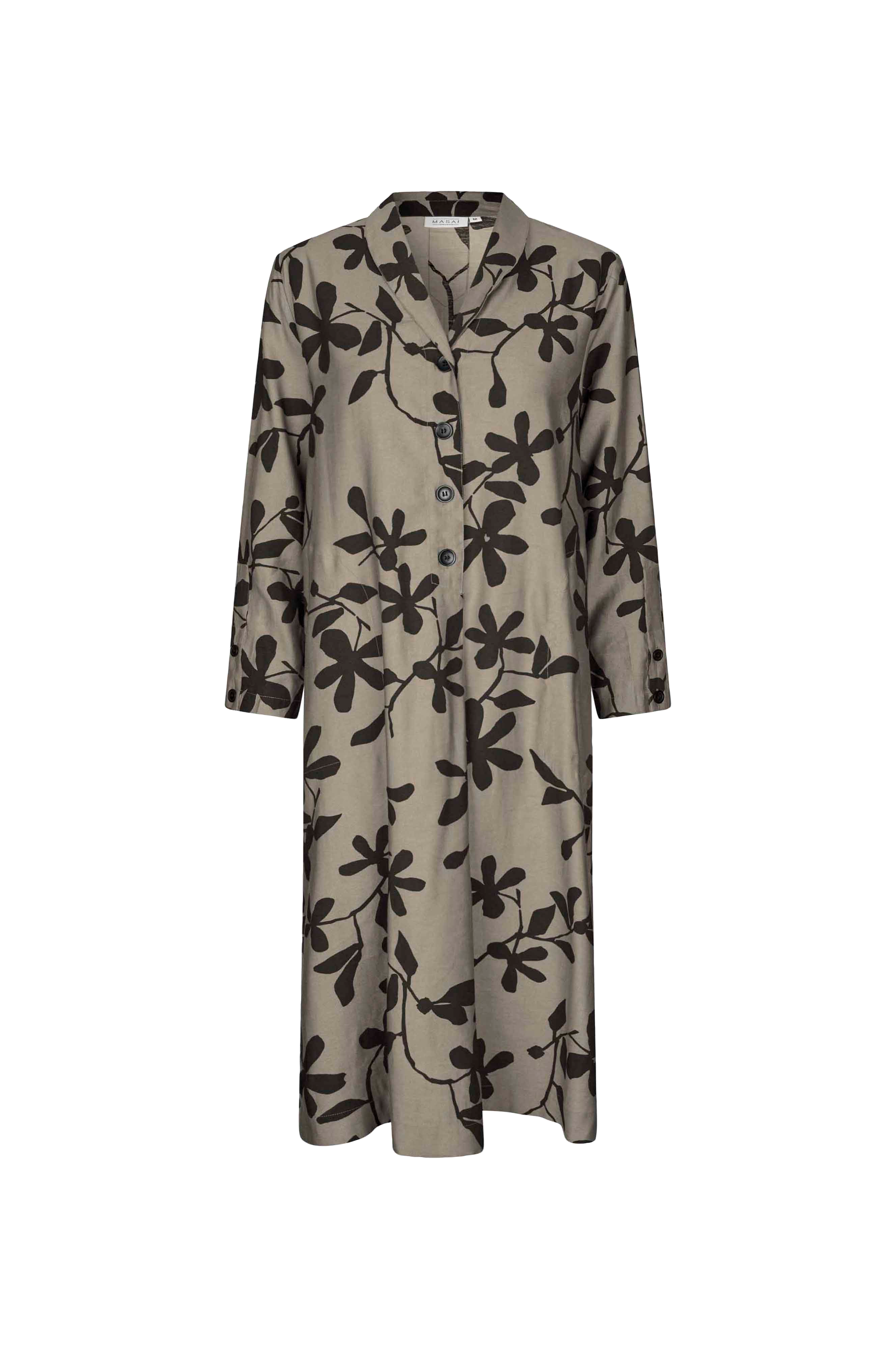 • Kjole i viskoseblanding med A-linje design• V-udskæring• Knapper ned til taljen• To knapper ved manchetterne• Store størrelser• Længde: 120 cm i størrelse M