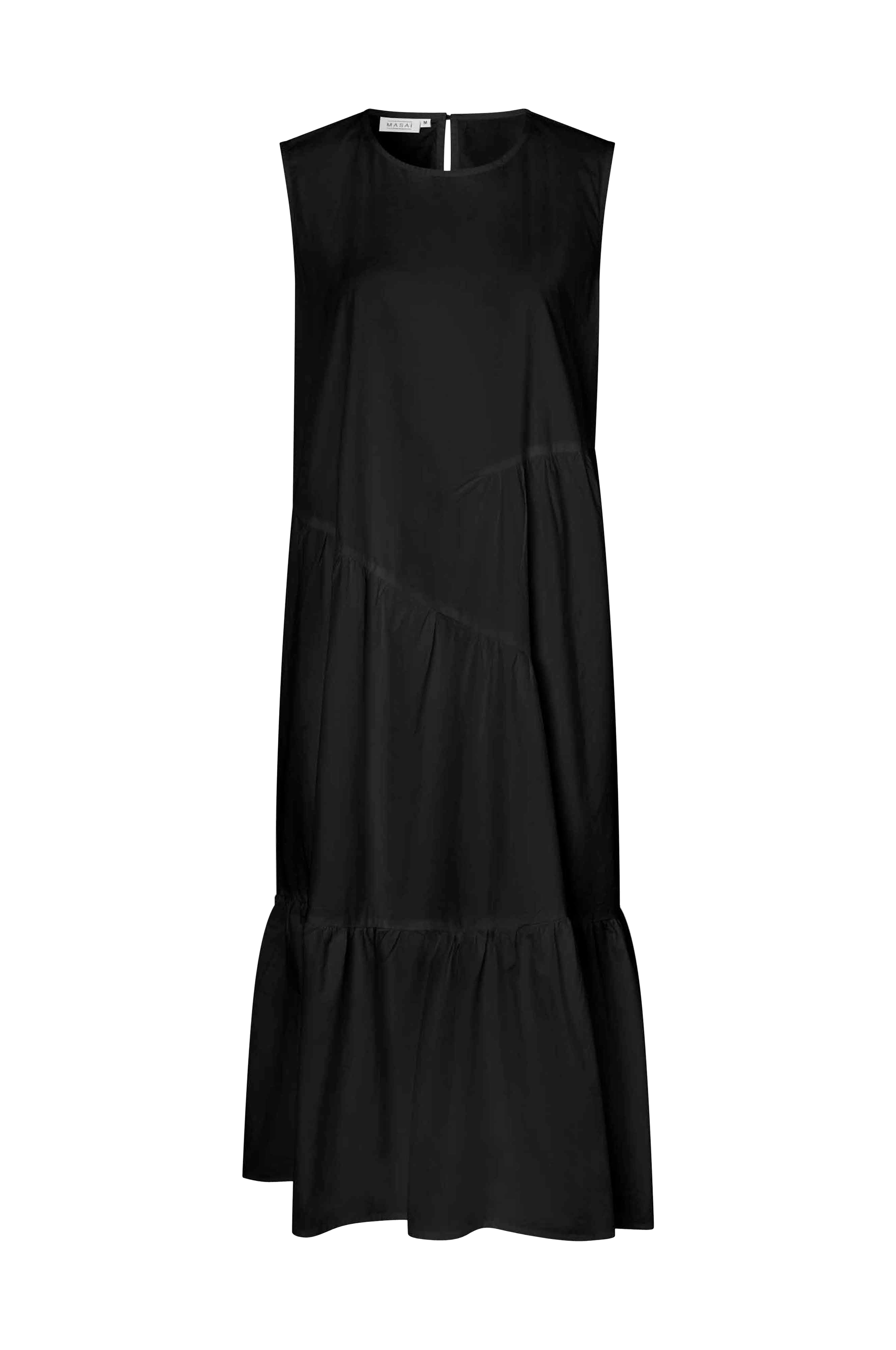 • Ærmeløs model med svaj med oversize pasform • Rund hals med knap i nakken • Diagonale, rynkede sømme • Indlagte sidelommer • Bred volant ved nederste kant • Længde: 120 cm i størrelse S