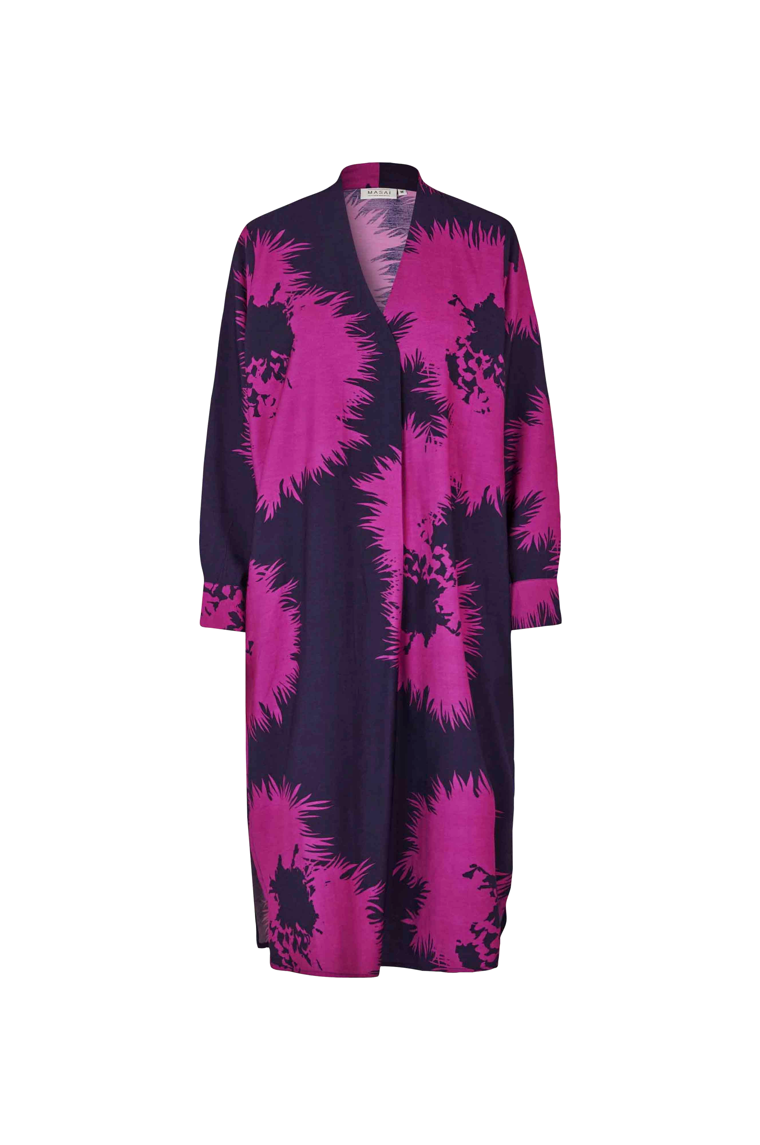 • Lige, uformel model• V-formet halsudskæring med syet i folder læg på brystet• Langt ærme med manchet• Indlagte sidelommer• Afrundede ventilationer nede i siderne• Længde: 108 cm i størrelse S