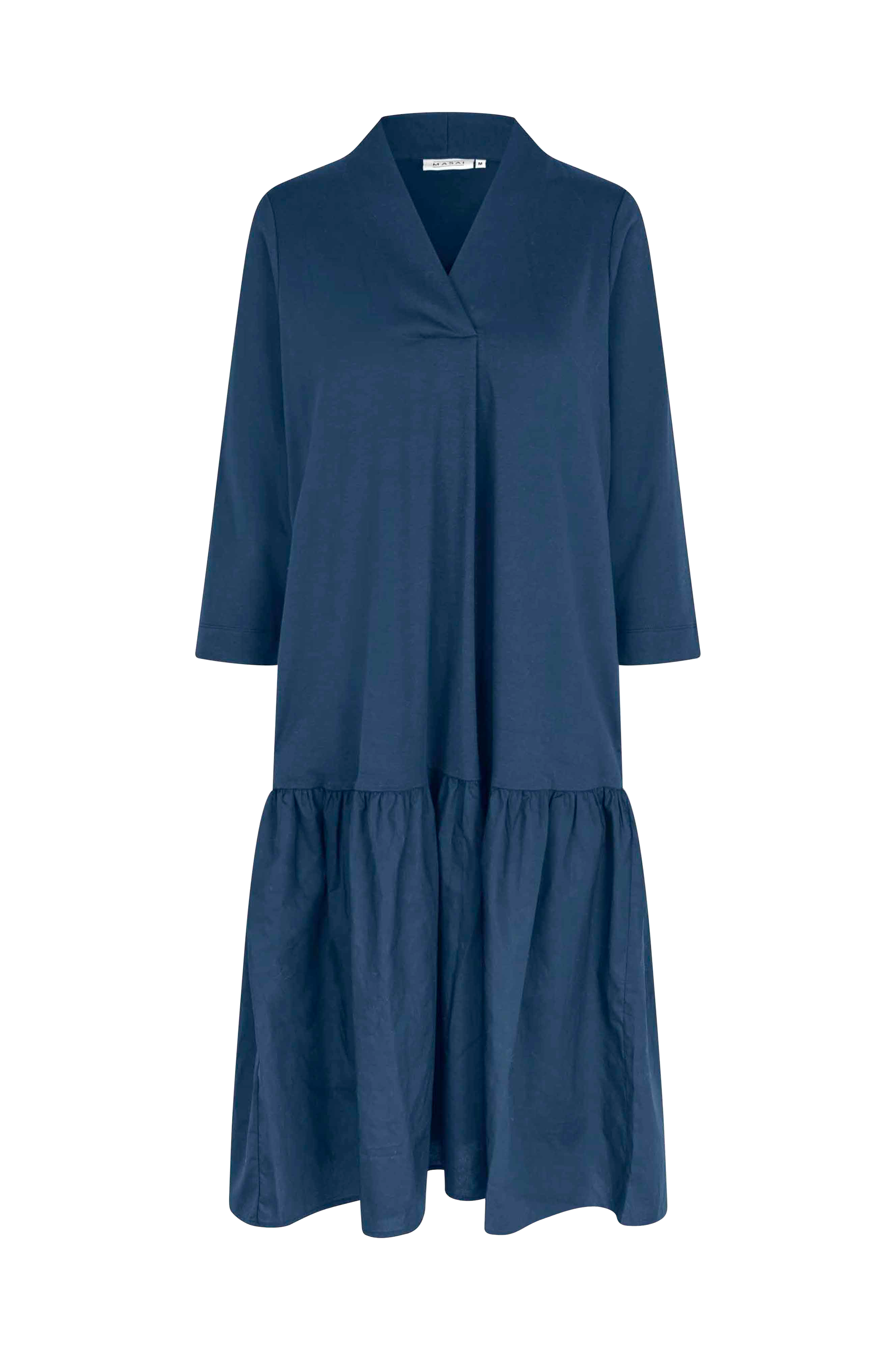 • Model med svaj i jersey• V-formet halsudskæring med bokslæg nedenfor• Lige, 3/4 langt ærme• Indlagte sidelommer• Bred, vævet volant ved nederste kant• Længde: 111 cm i størrelse M