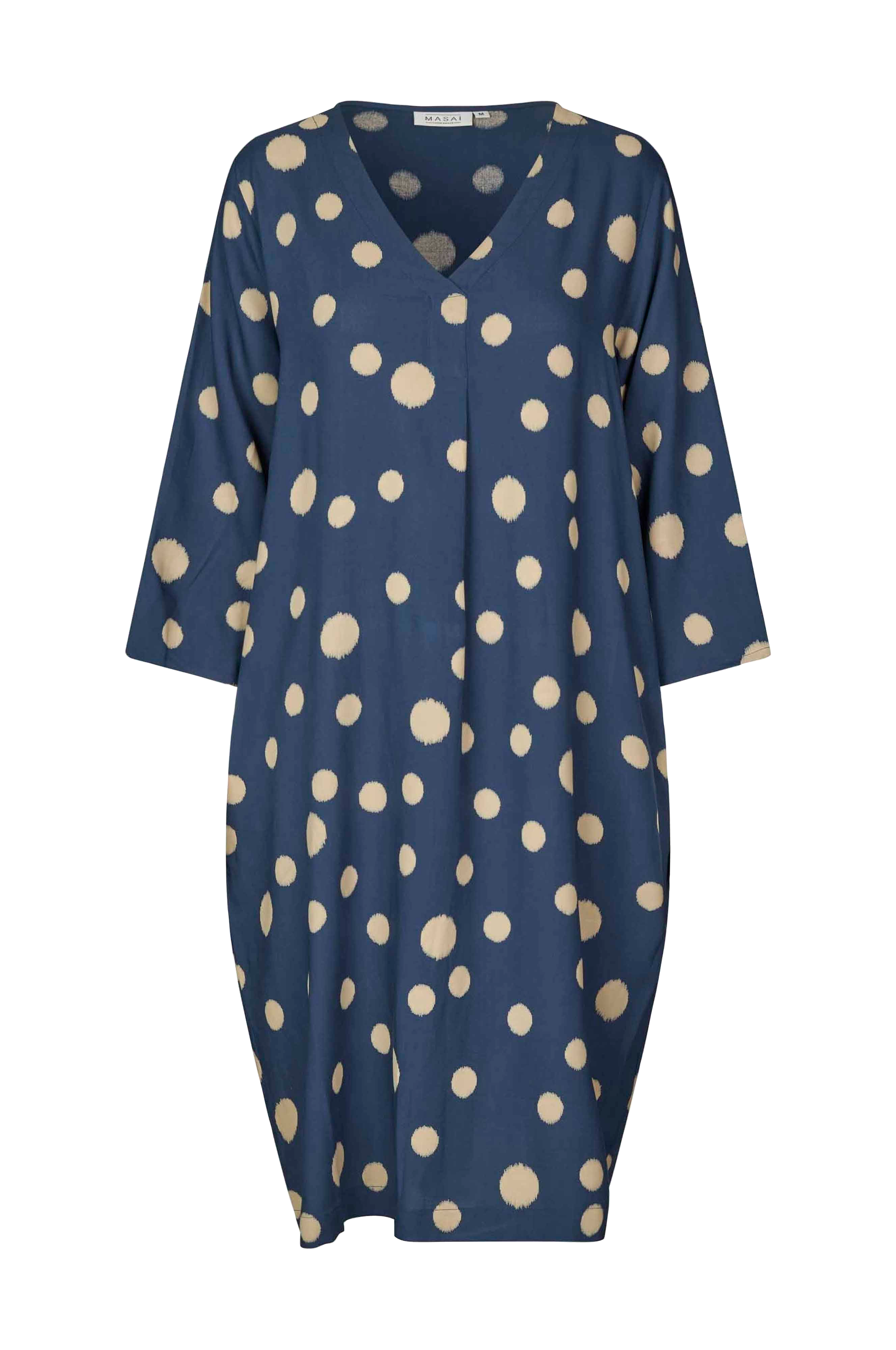 • Mønstret kjole i viskose• V-formet halsudskæring• Halvlange ærmer• Fold midt foran og midt bagpå• Store størrelser• Længde: 110 cm i størrelse M