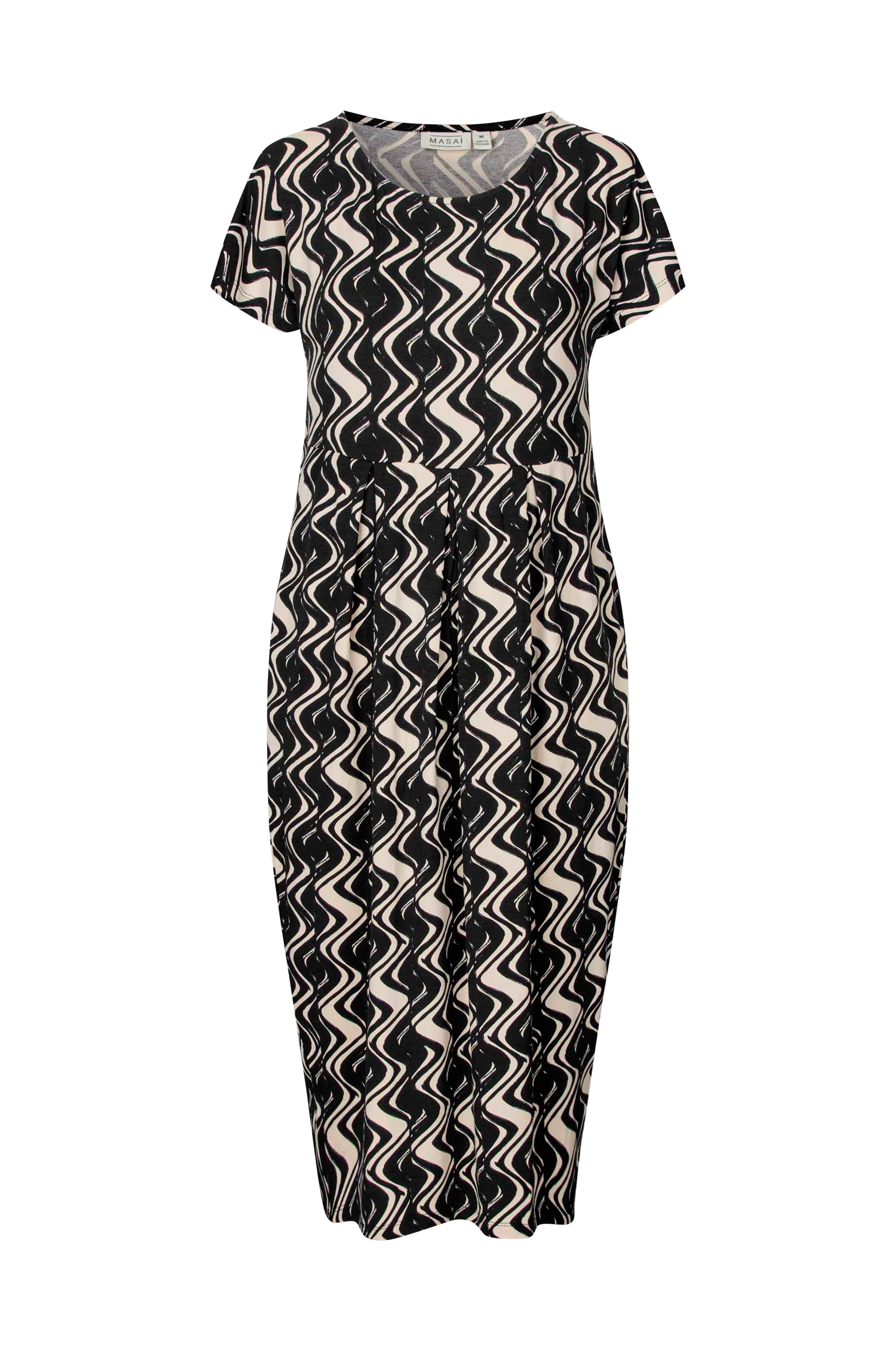 • Model med svaj i jersey• Talje med bokslæg hele vejen rundt• Rund hals• Kort, kimonoskåret ærme• Indlagte sidelommer• Længde: 106 cm i størrelse S
