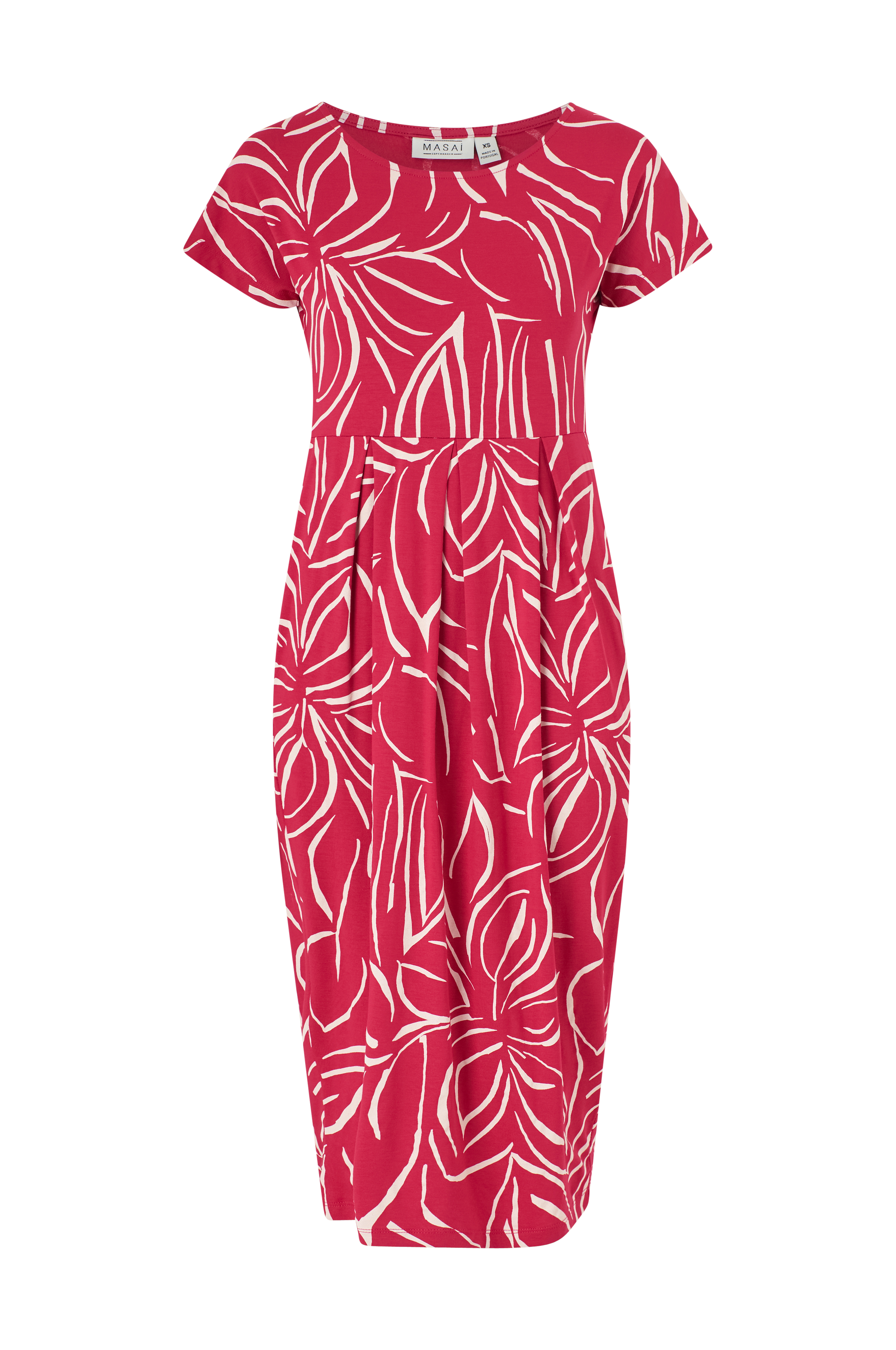 • Mønstret kjole i viskoseblanding med modfold foran og bagpå• Rund halsudskæring• Korte ærmer• Sidelommer• Normal pasform• Længde: 112 cm i størrelse XS