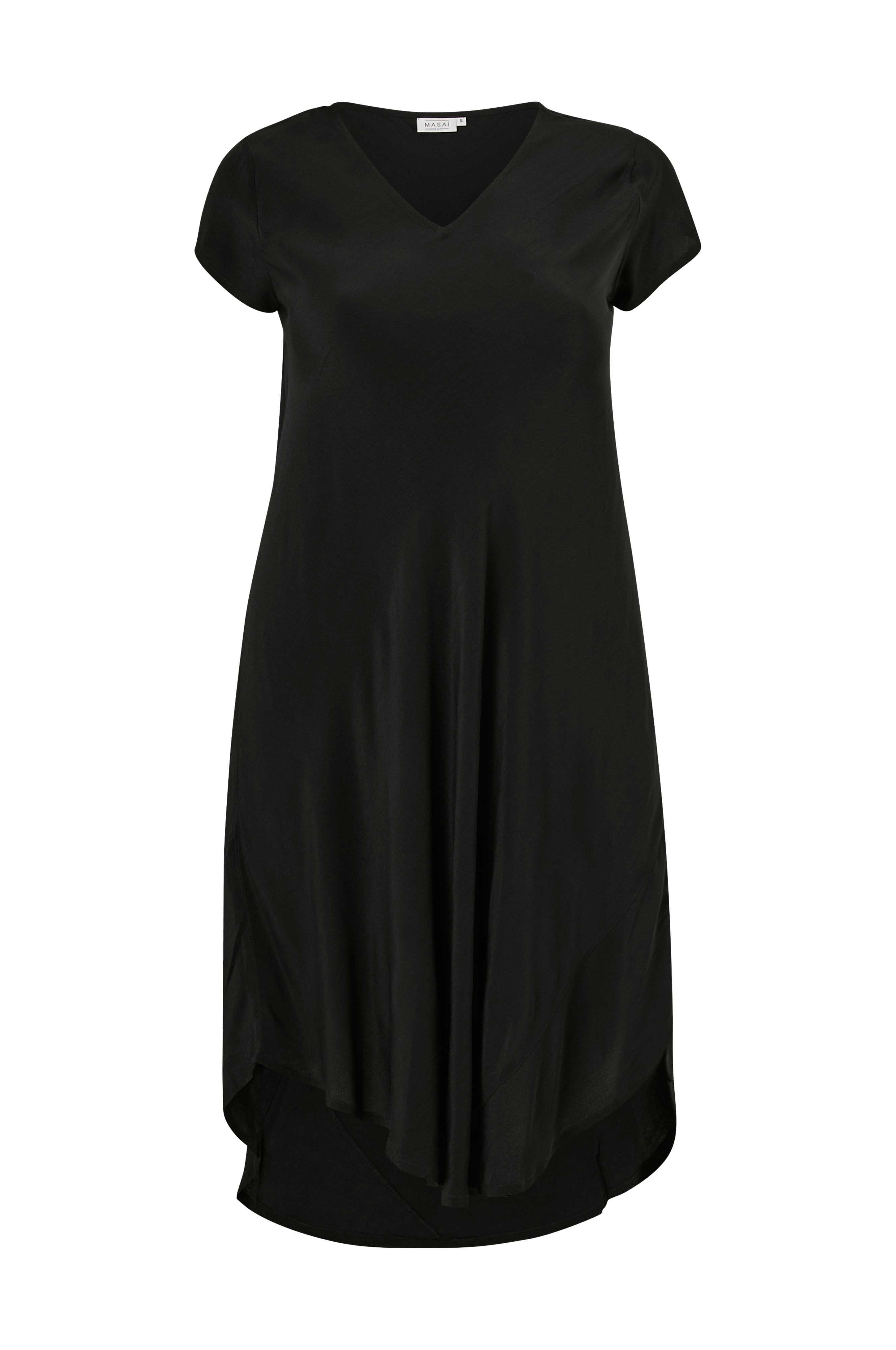 • Enkel, stilren kjole• Korte ærmer• V-udskæring• Afrundet søm• Længde: 117 cm i størrelse S
