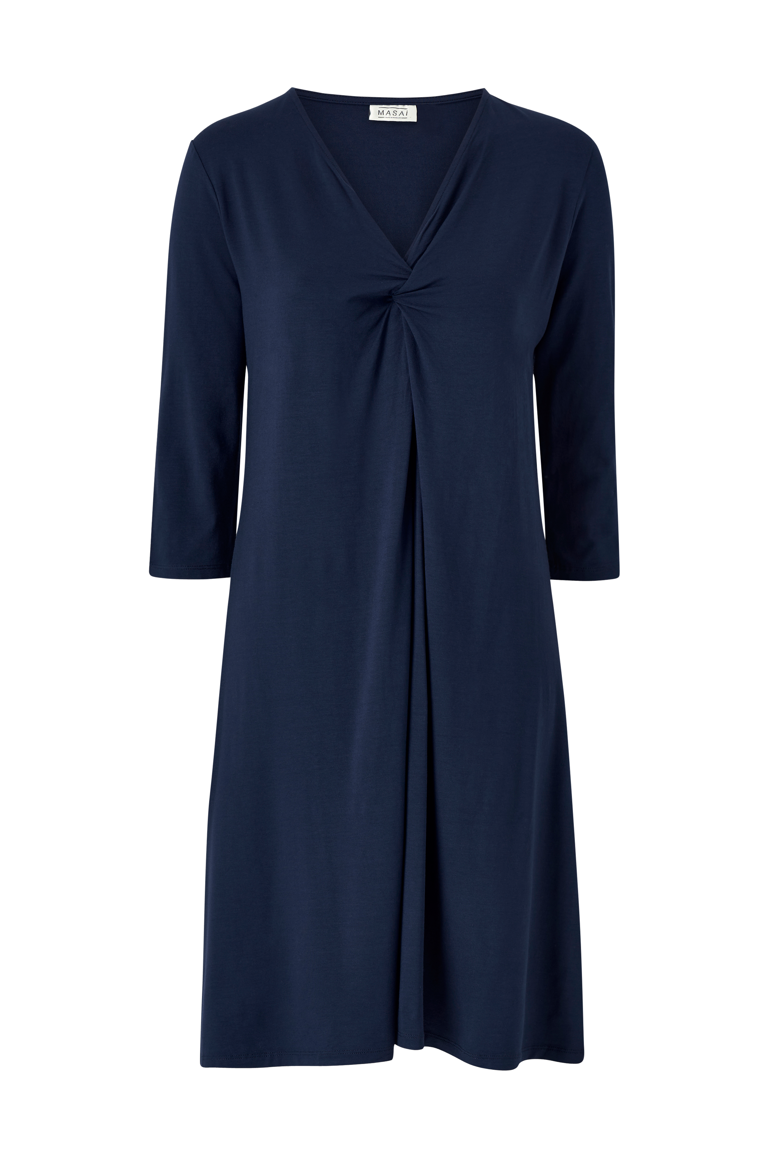 • Kjole i viskosejersey• V-udskæring med knudedetalje• 3/4 lange ærmer• Længde: 98 cm i størrelse S