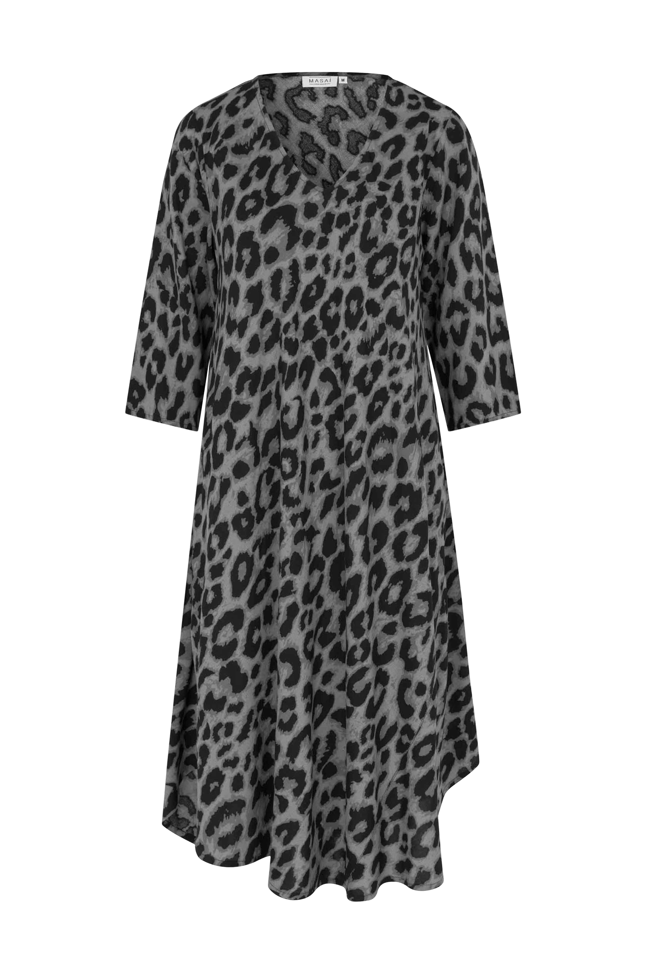 • Mønstret midikjole i viskose• V-udskæring• 3/4 lange ærmer• Afrundet søm• Længde: 110 cm i størrelse S