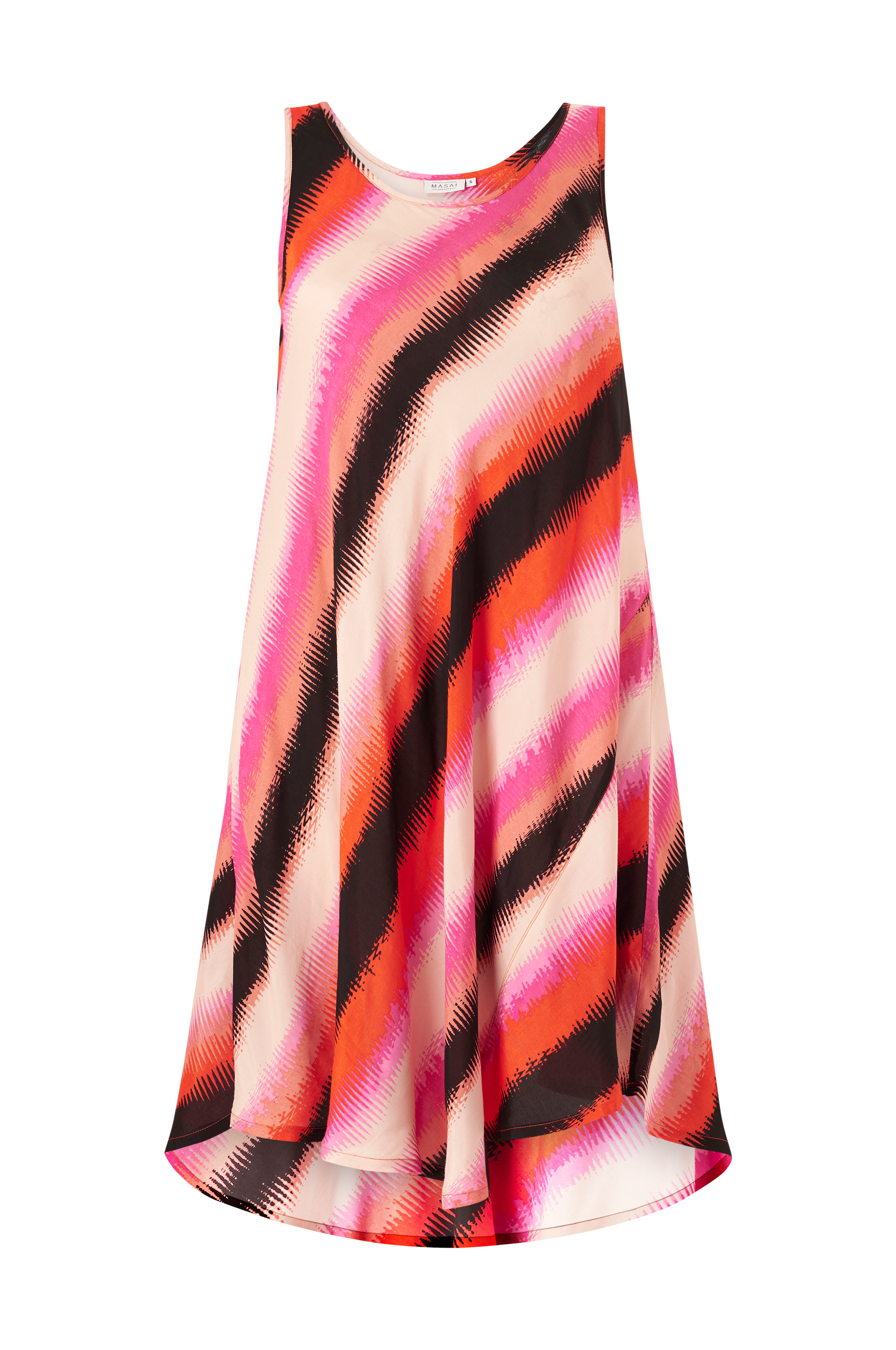 • Ærmeløs, mønstret kjole i viskose • Fleksibel model • Afrundet søm • Kvalitet med glans • Længde: 110 cm i størrelse S • Produktet indeholder viskose fra Livaeco by Birla Cellulose™, en syntetisk cellulosefiber af træmasse der kommer fra kontrolleret og ansvarsfuldt skovbrug.