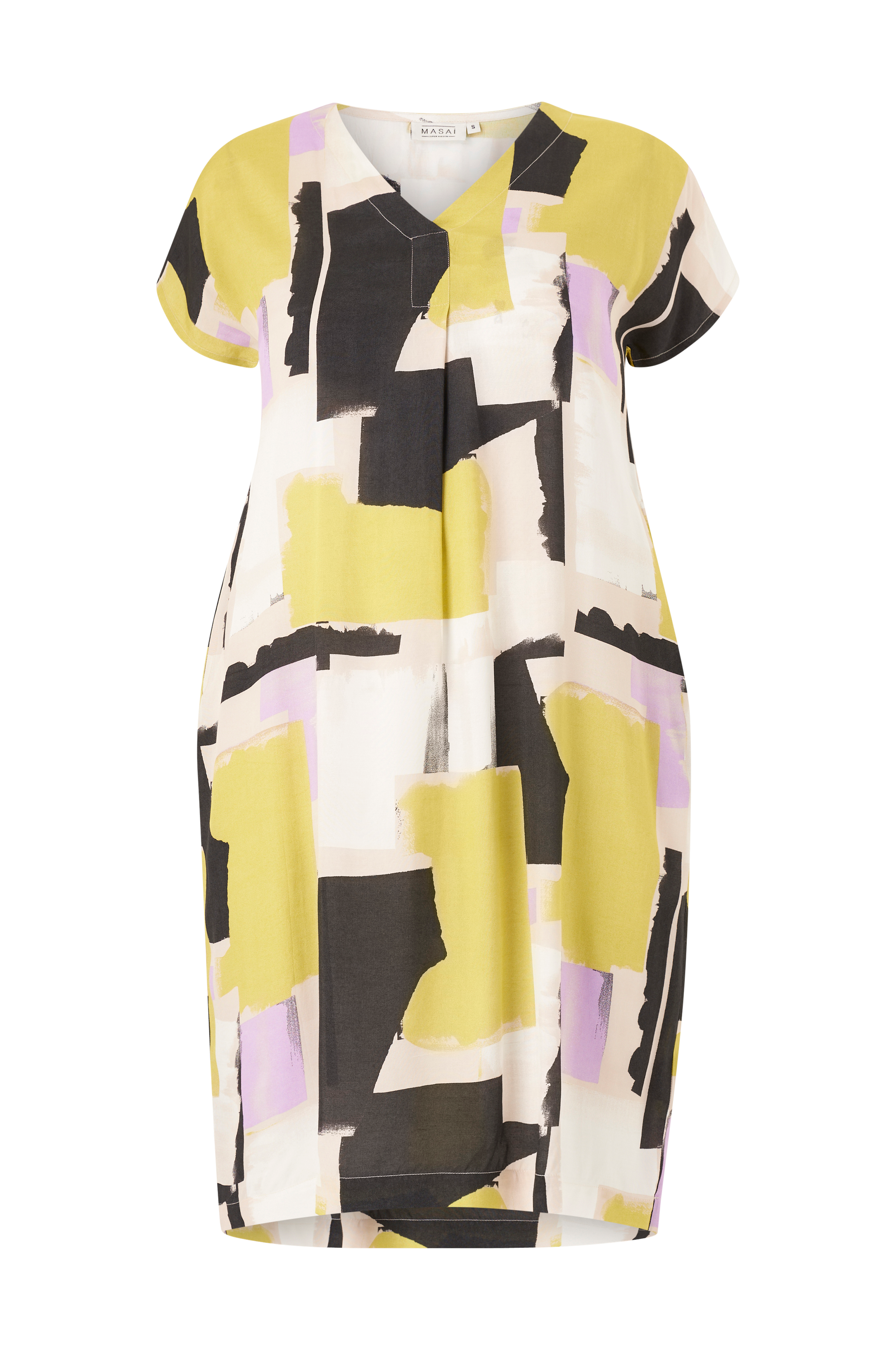 • Mønstret kjole i viskose • A-linje design • V-udskæring • Lommer i siderne • Længde: 103 cm i størrelse S • Produktet indeholder viskose fra Livaeco by Birla Cellulose™, en syntetisk cellulosefiber af træmasse der kommer fra kontrolleret og ansvarsfuldt skovbrug.