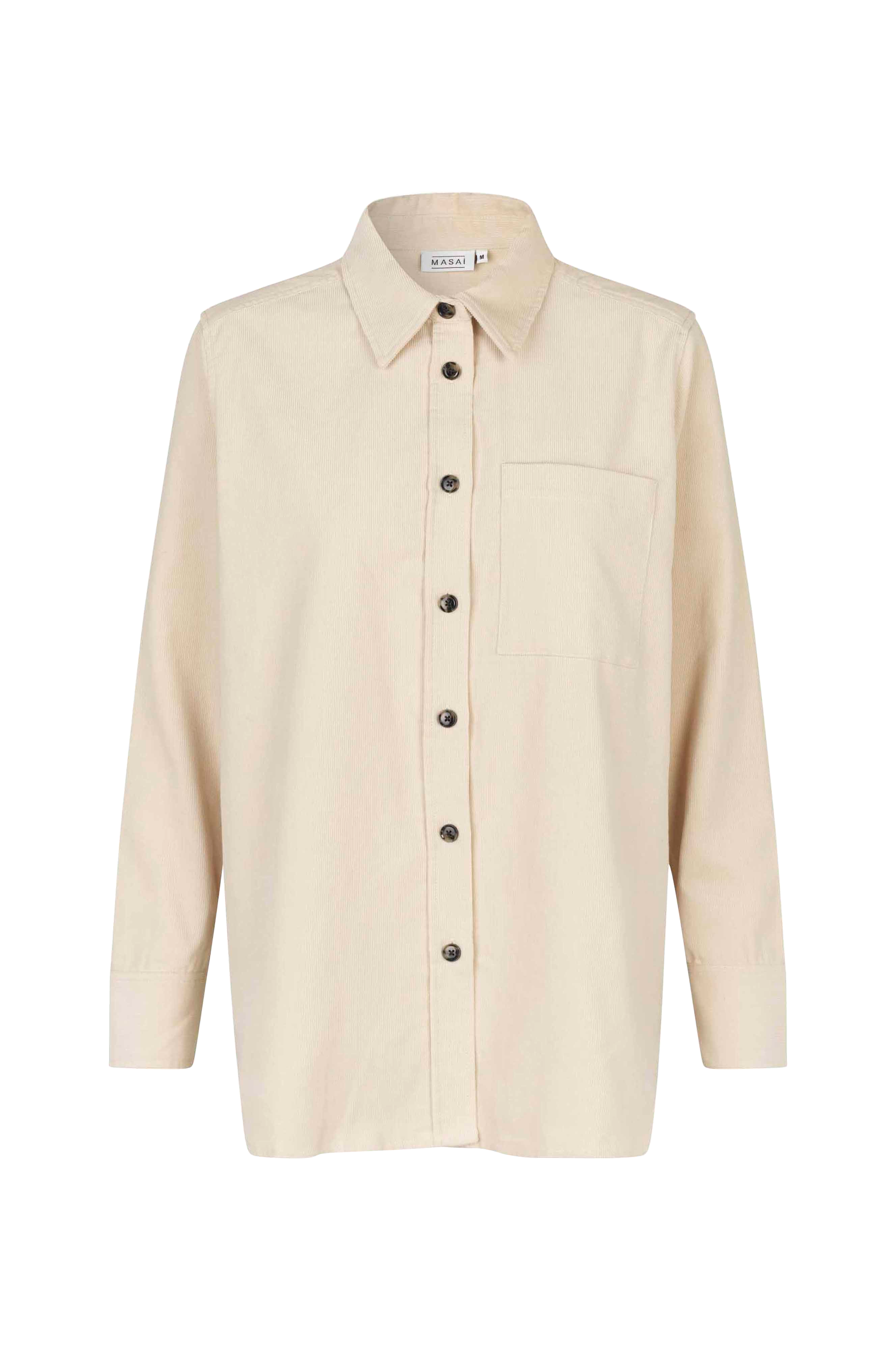 • Skjorte i smalstribet kraftig fløjl• En brystlomme• To knapper ved manchetterne• Længere bagside med afrundet søm