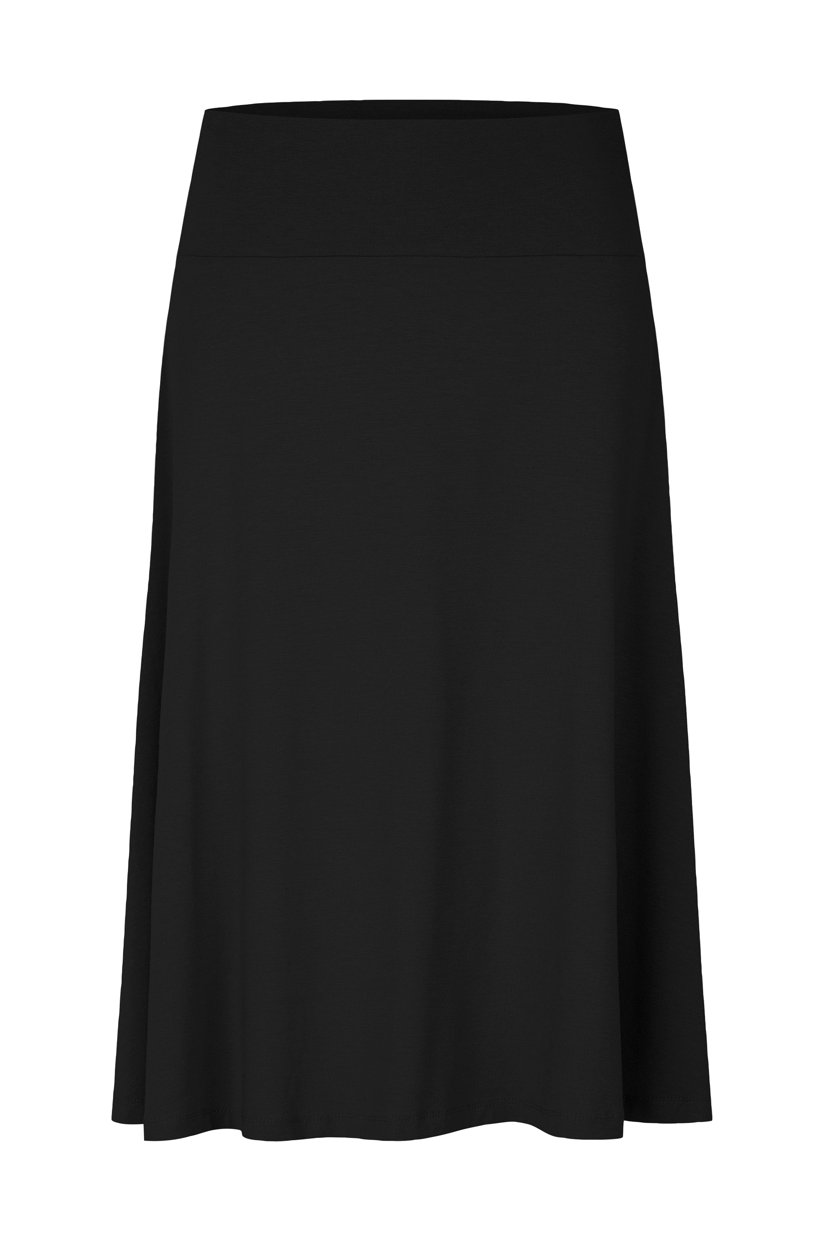 Jerseynederdel i A-formet model med skøn vidde. Længde ca. 72 cm i str. S.