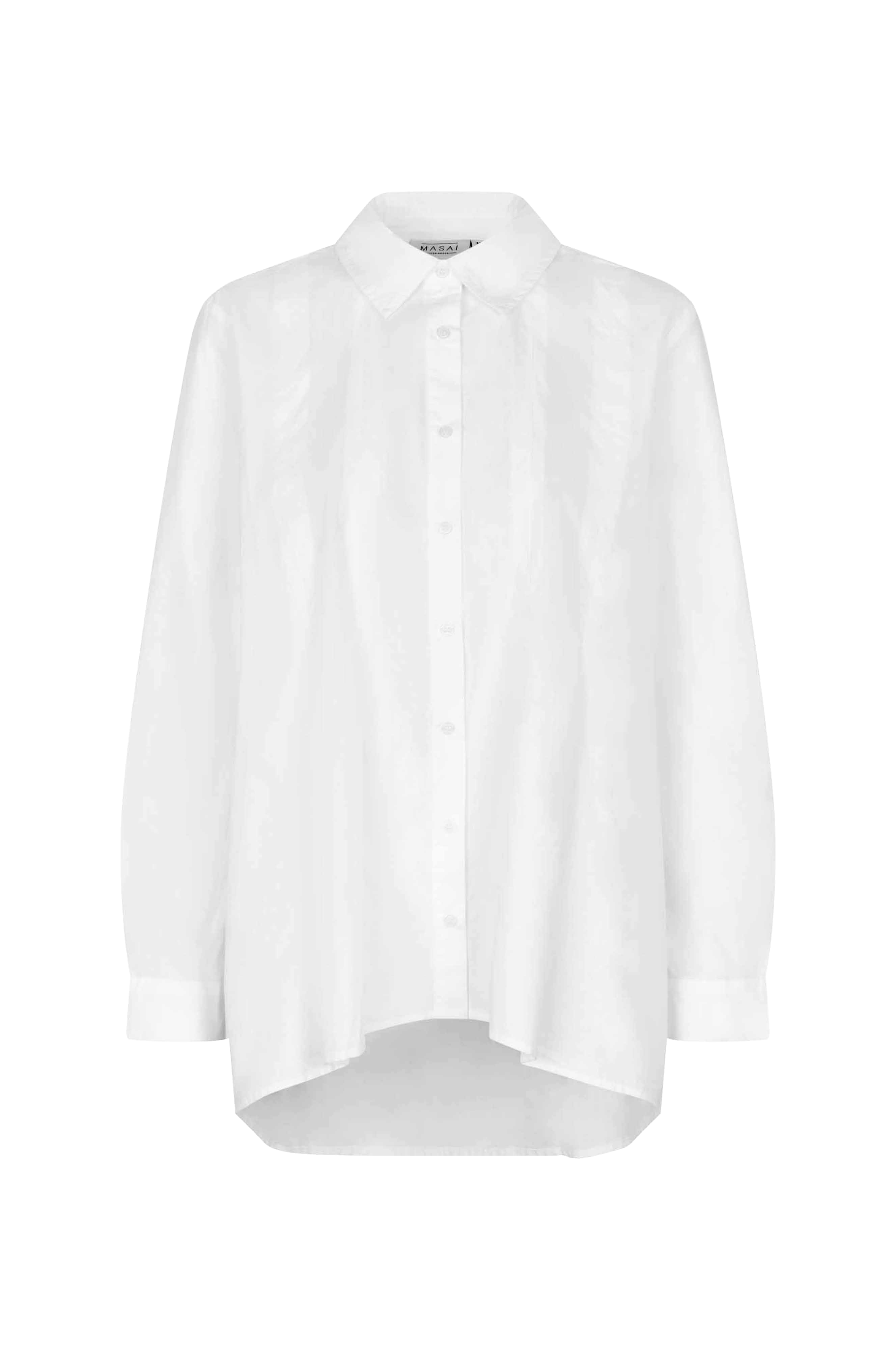 • Model med svaj med foldede bokslæg nederst• Lille krave• Knapper foran• Langt ærme med manchet• Lang søm bagpå