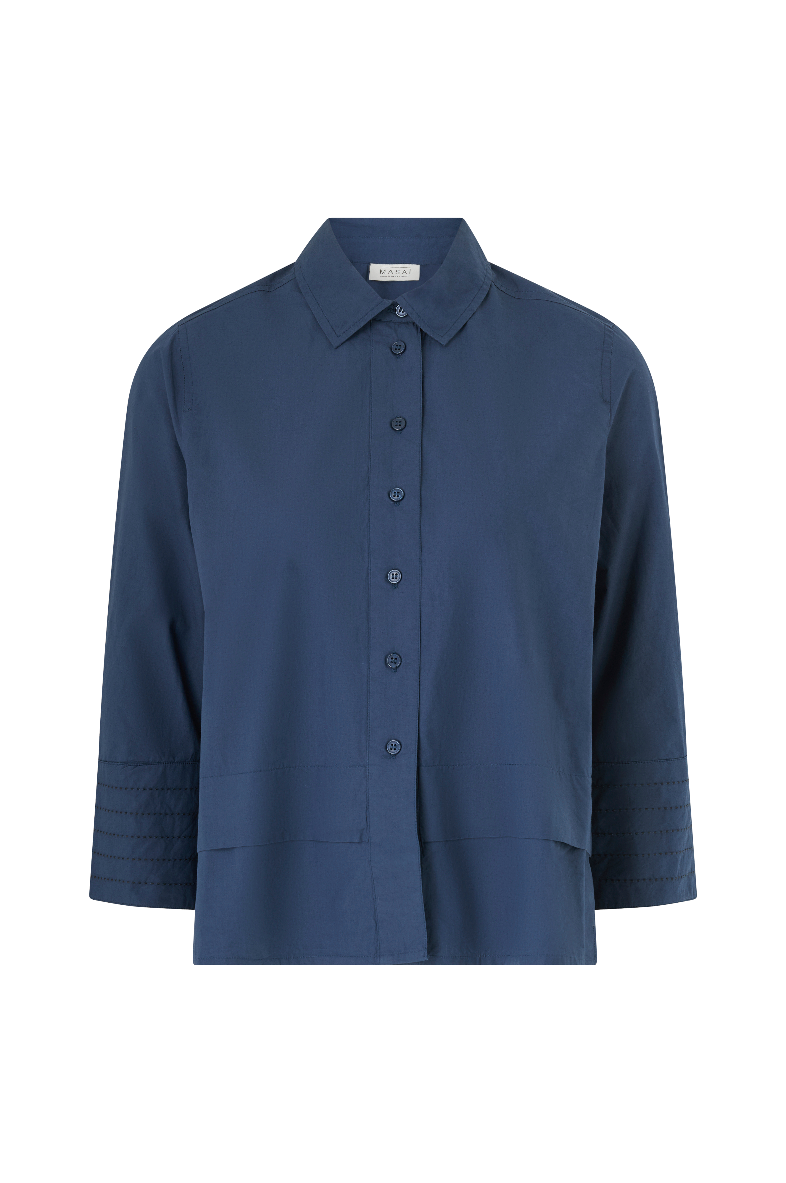 • Skjorte i bomuld• 3/4 lange ærmer• Manchet ved manchetterne• Knapstolpe hele vejen frem• Dekorative sømdetaljer• Slids nede i siderne• Normal pasform