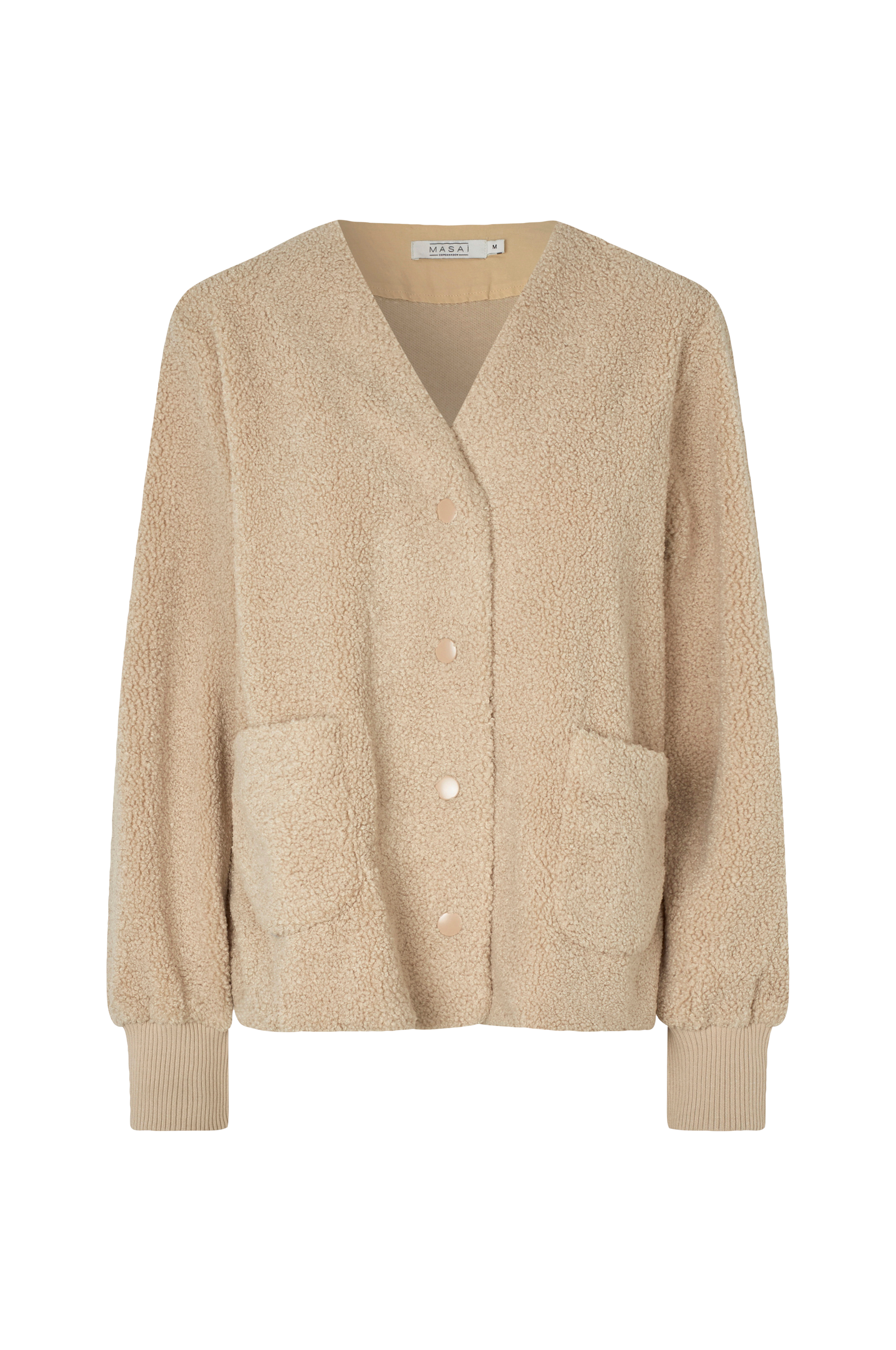 • Blød jakke i teddy• V-udskæring• Ribmanchetter• Trykknapslukning• To yderlommer• Afslappet pasform• Længde: 61 cm i størrelse S