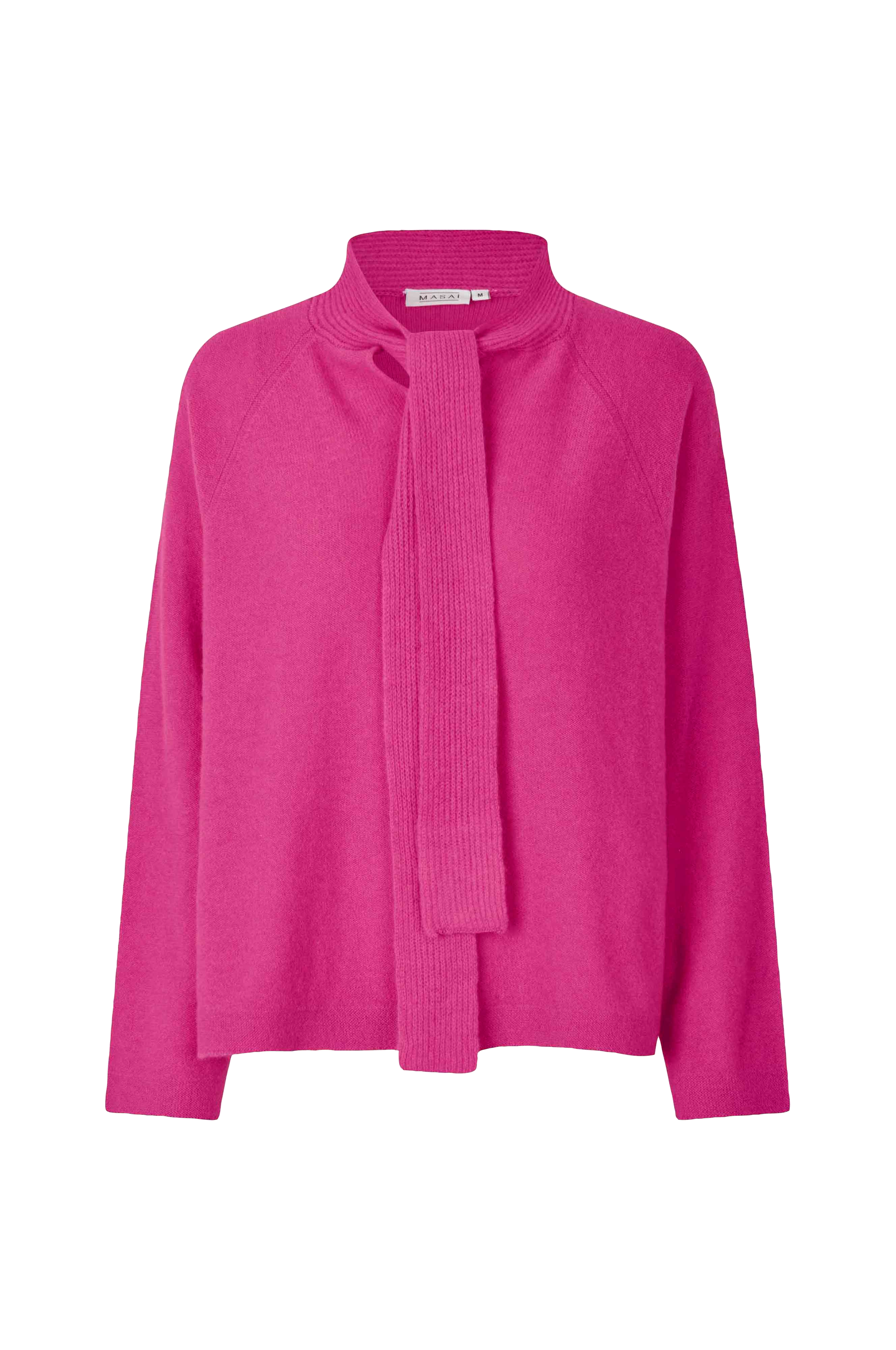 • Bred, fintstrikket model• Høj krave med langt bindebånd foran• Bredt, lige raglanærme