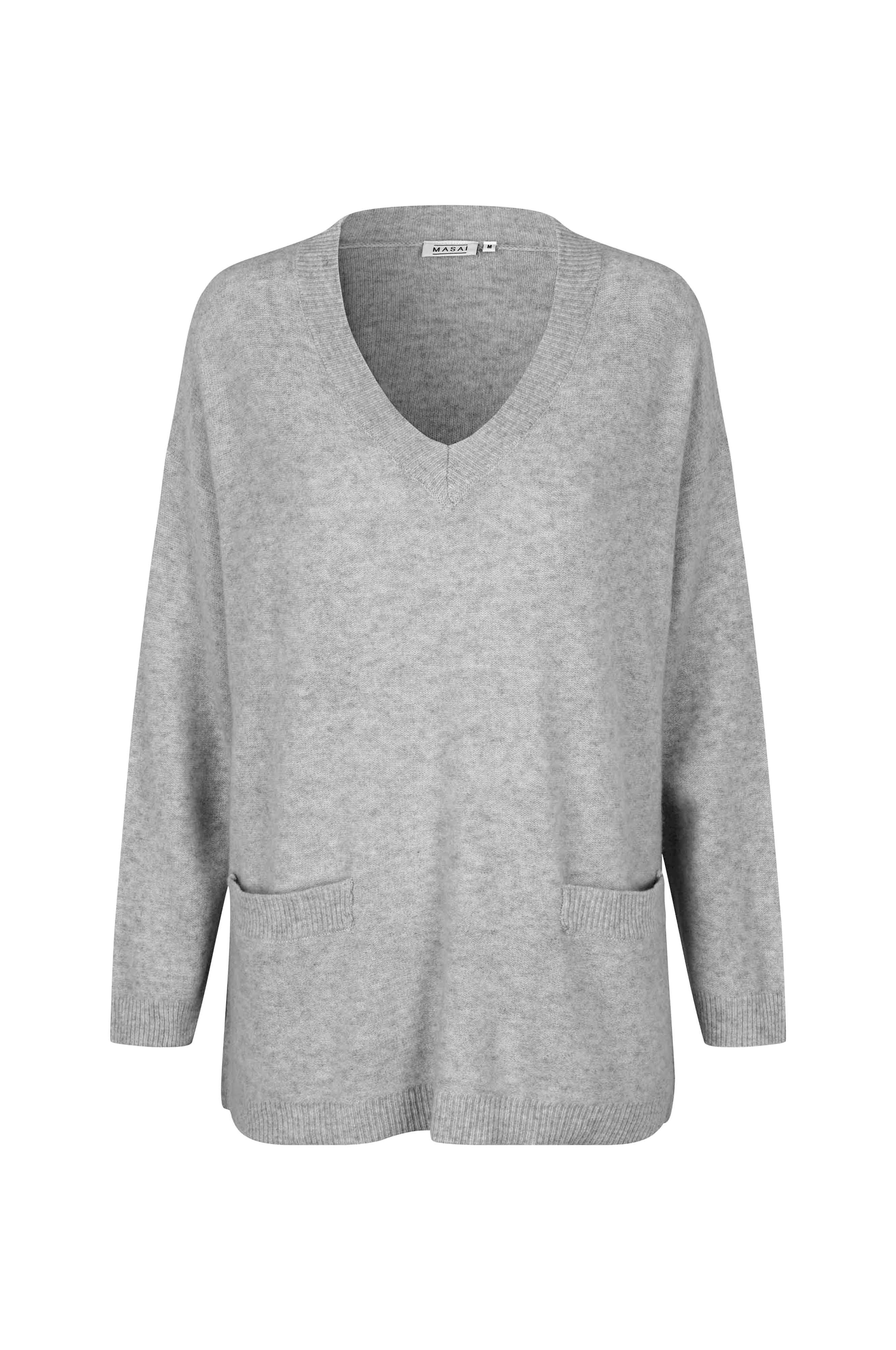 • Bred, lige model med indlagte lommer nederst• V-udskæring med ribkant• Nedsænket skulder• Langt ærme med ribstrik ved manchetterne• Ribkant nederst med slids i siderne