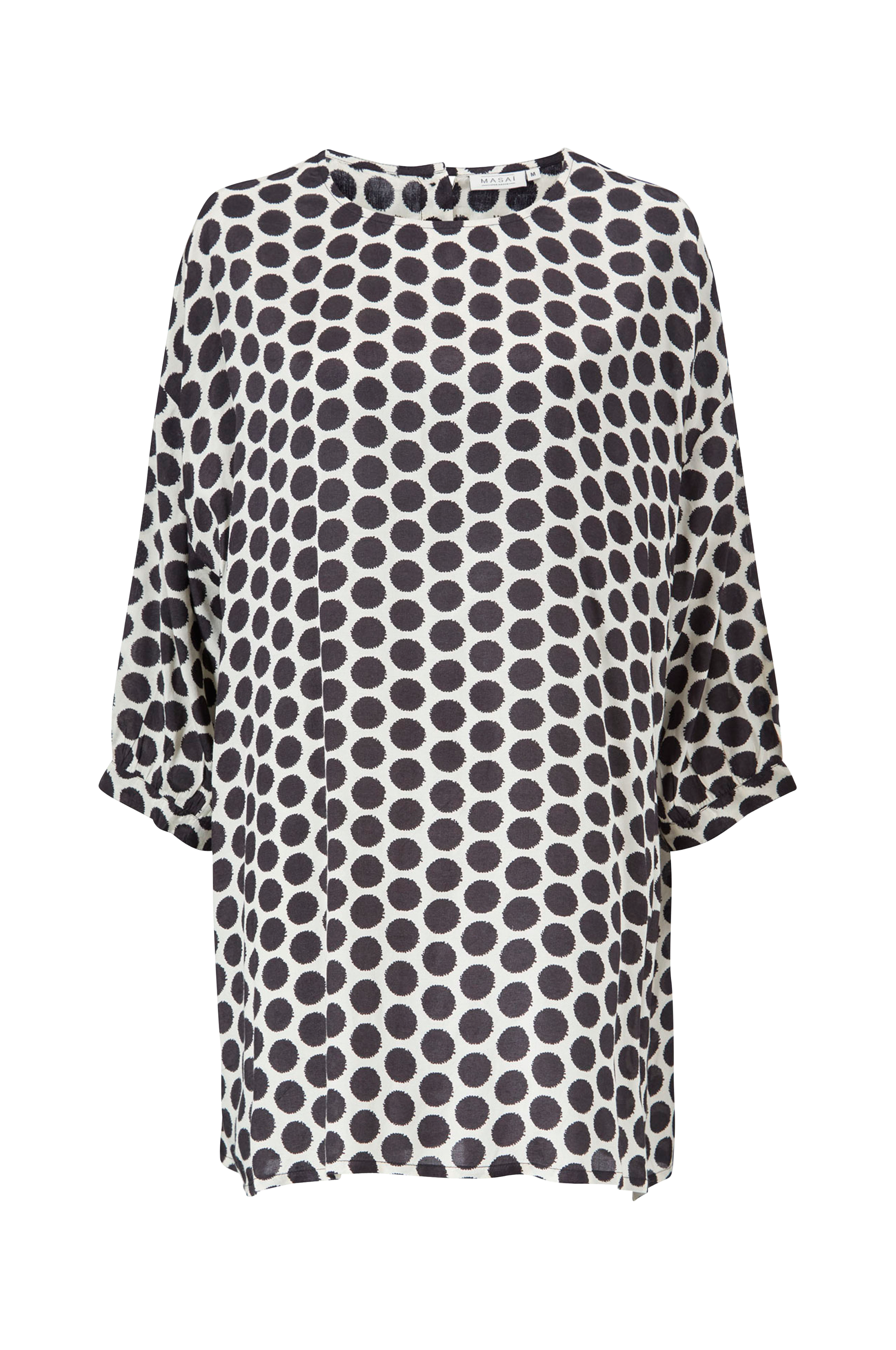 Tunika i oversizemodel med 3/4-lange ærmer med smal manchet i ærmekanterne og lave skuldre. I tynd, vævet viskose med glans. Længde ca. 80 cm i str. S.