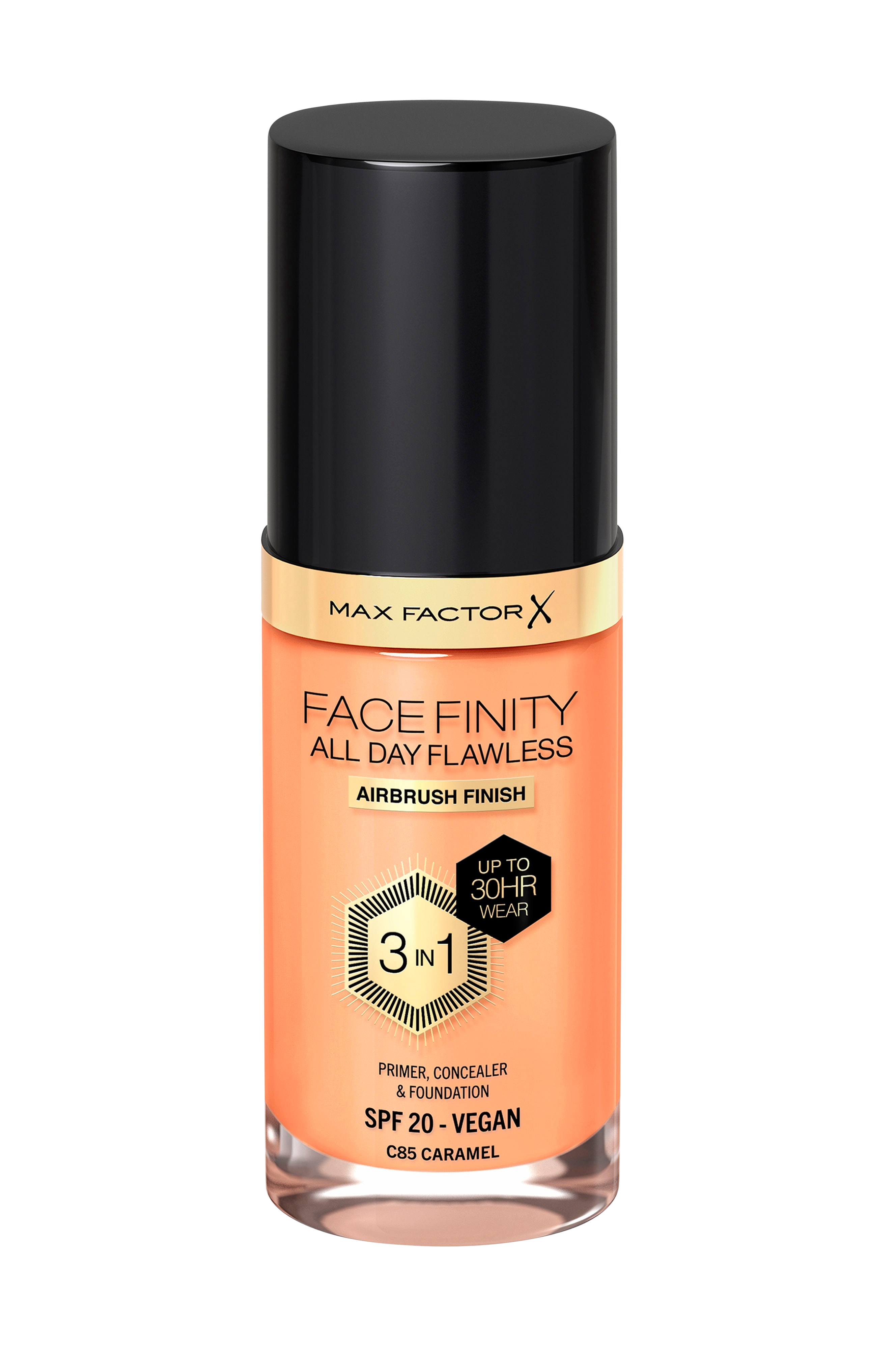 Facefinity All Day Flawless Foundation fra Max Factor giver dig tre funktioner i én - primer for holdbarhed, foundation med SPF 20 og concealer for perfekt dækning. Giver et holdbart resultat med høj dækkeevne og mat finish. Er oliefri og dermatologisk testet og desuden vegansk.