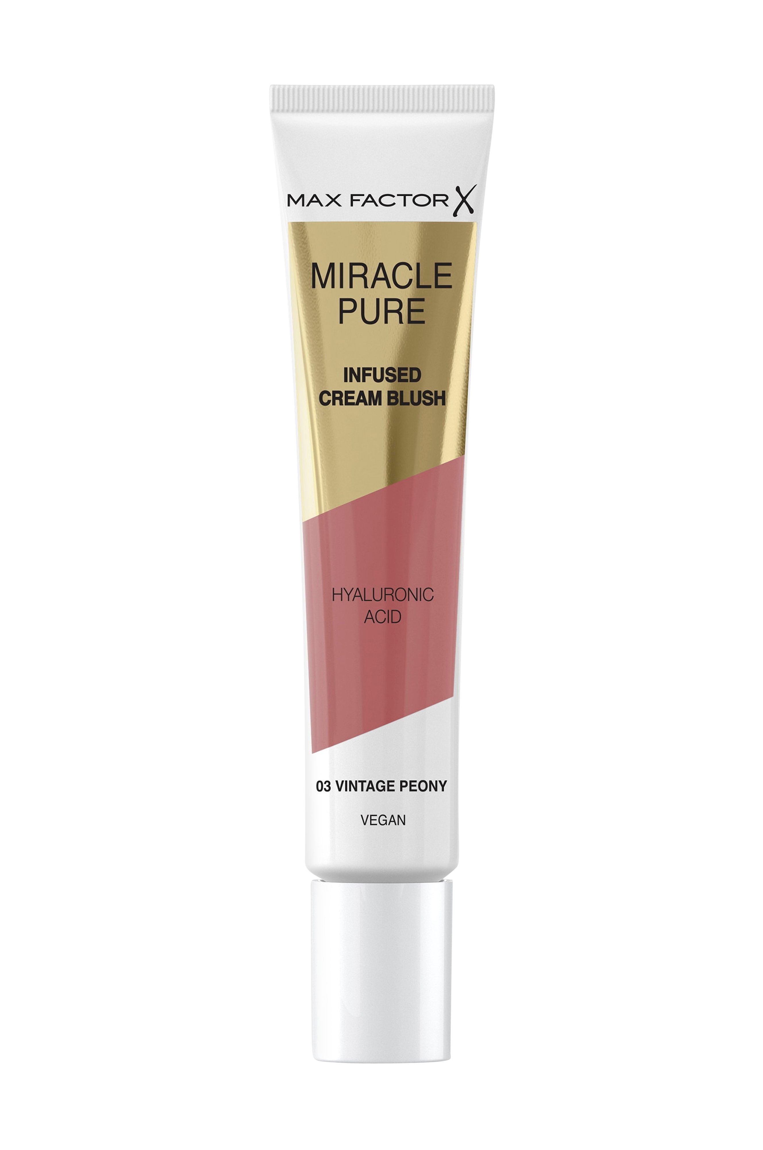 Max Factor Miracle Pure Blush indeholder et fugtgivende komplex som fugter og giver huden fylde, samtidigt med at den giver en smuk glød. Rougen indeholder hyaluronsyre og squalane og er udviklet til nemt at blive blendet ud og bygget op, så du opnår den perfekte farve. Findes i fire strålende nuancer som passer til alle hudtoner.