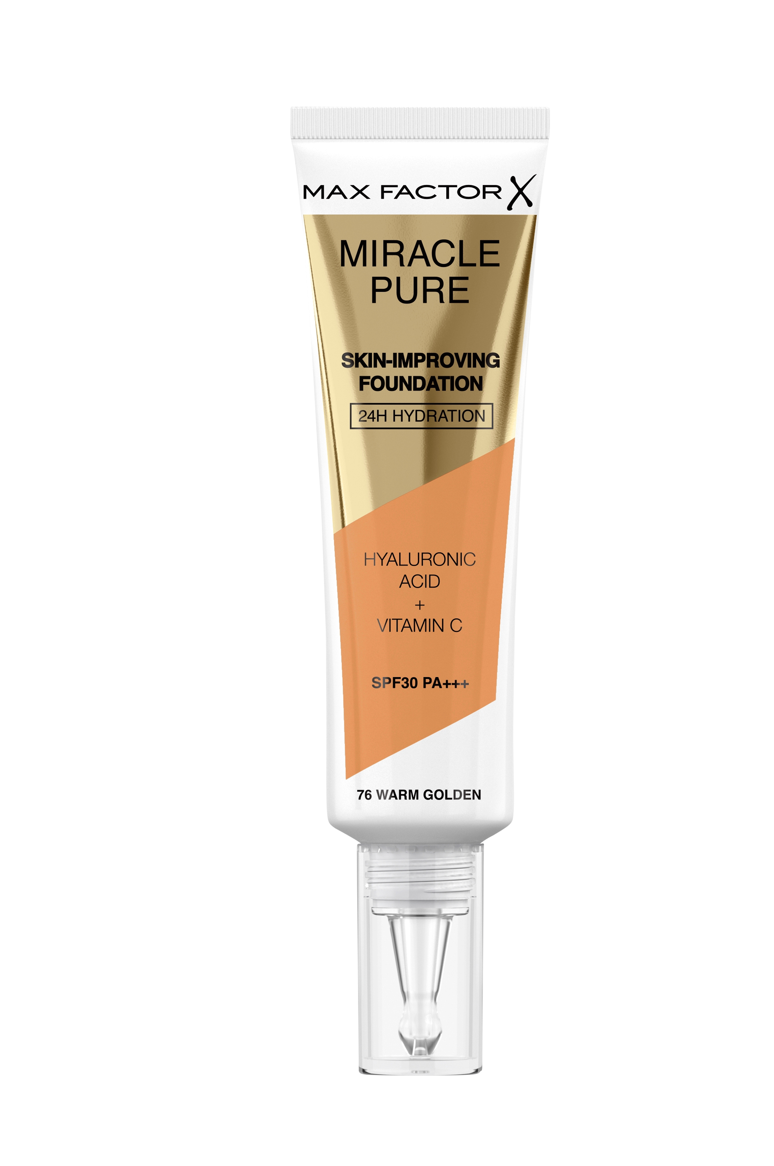 Max Factor præsenterer sit seneste mirakel - Miracle Pure Foundation. En foundation inspireret af hudpleje og ansigtspleje beriget med hyaluronsyre. Klinisk bevist at den plejer huden, mens du har den på, og på kun et minut og med en enkelt dråbe giver den ikke kun huden smuk fylde, men også fem andre fordele: bedre glans, fasthed, elasticitet, densitet og smidighed.