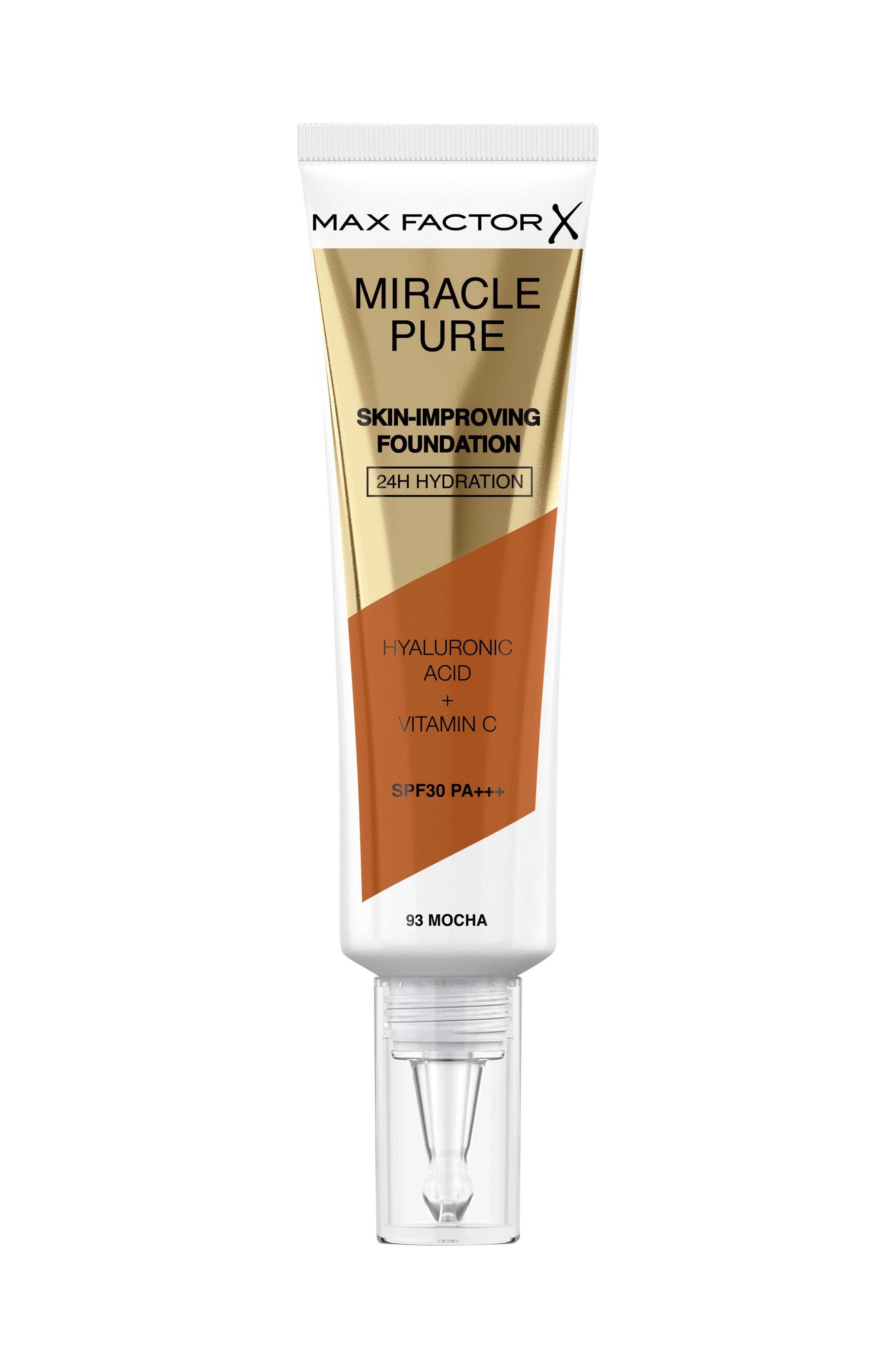 Max Factor præsenterer sit seneste mirakel - Miracle Pure Foundation. En foundation inspireret af hudpleje og ansigtspleje beriget med hyaluronsyre. Klinisk bevist at den plejer huden, mens du har den på, og på kun et minut og med en enkelt dråbe giver den ikke kun huden smuk fylde, men også fem andre fordele: bedre glans, fasthed, elasticitet, densitet og smidighed.