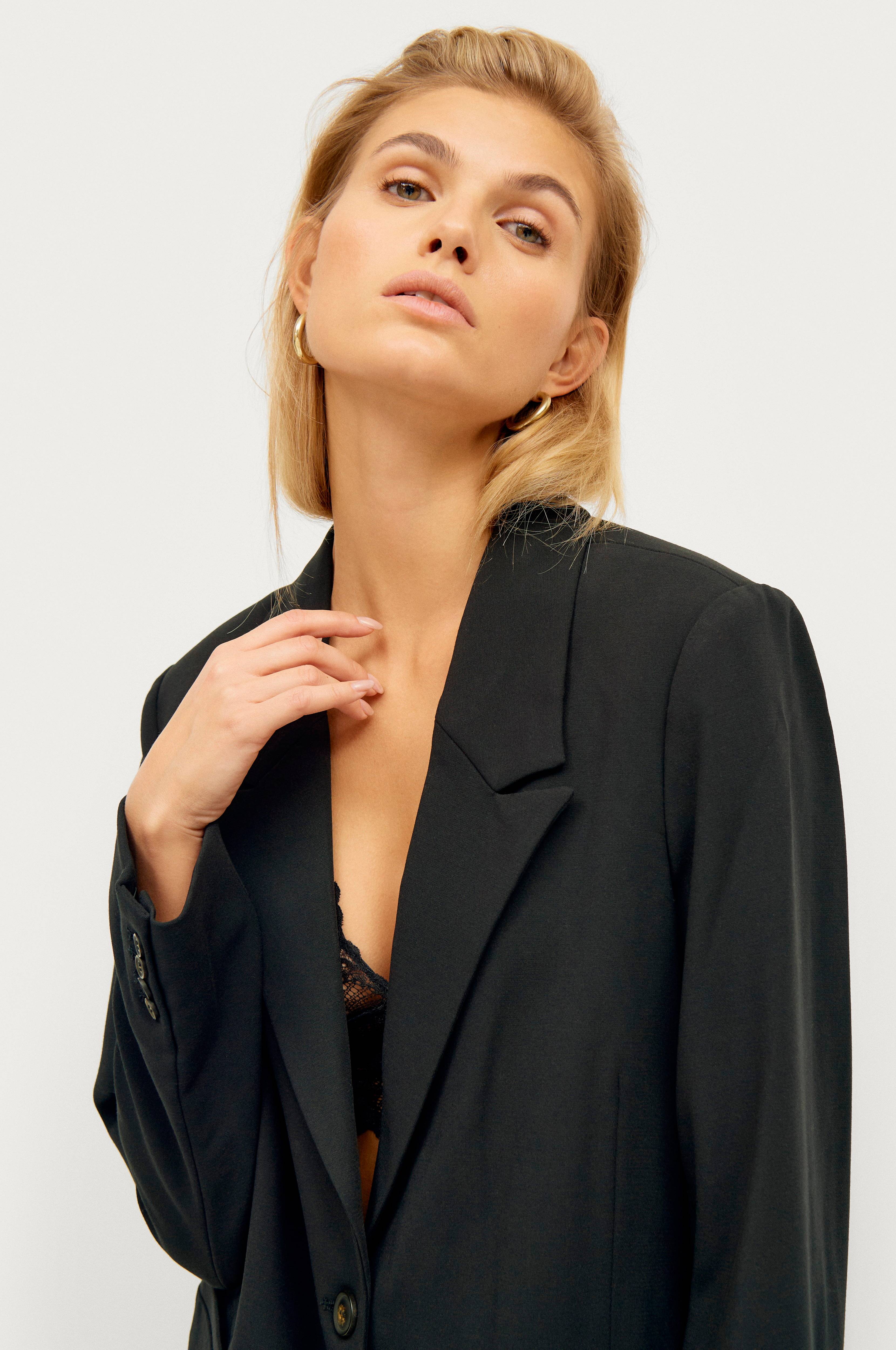 Modellen er 180 cm høj og bærer en str. S