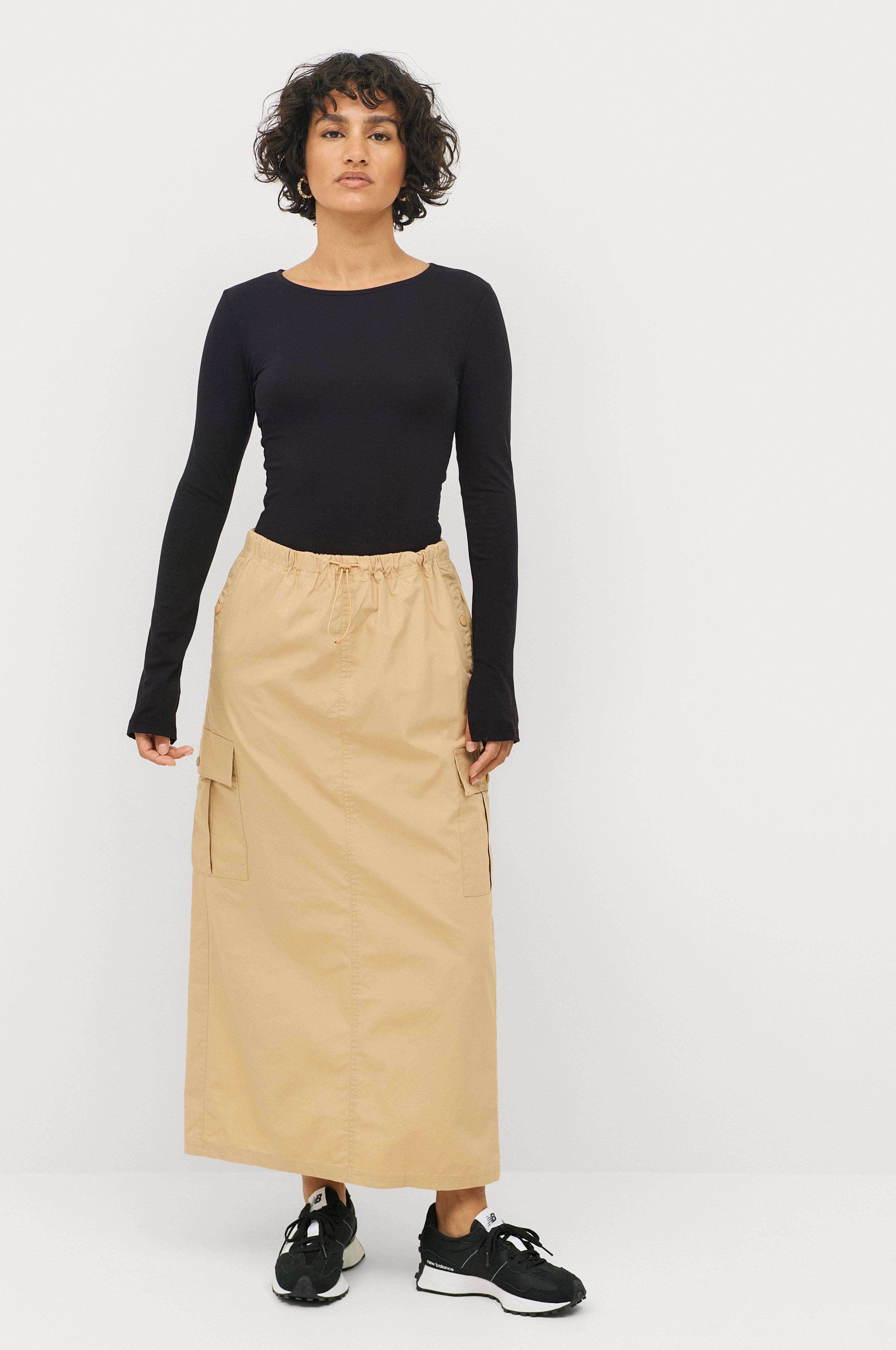 • Elastisk talje med træksnørre• Fire lommer• Høj slids bagpå• Længde: 92 cm i størrelse S