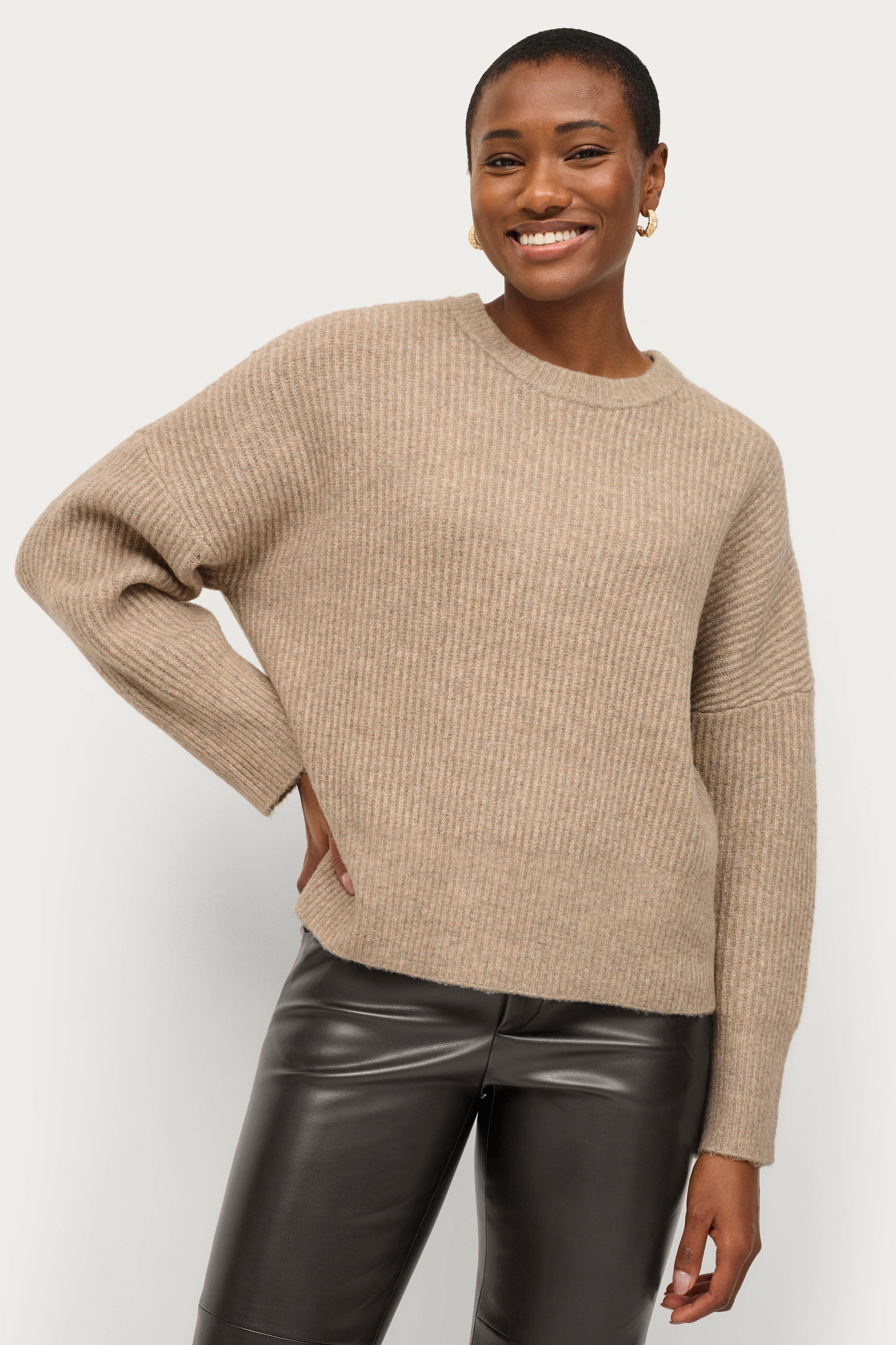 • Blød, strikket kvalitet i uldmiks• Løs pasform• Nedsænkede skuldre