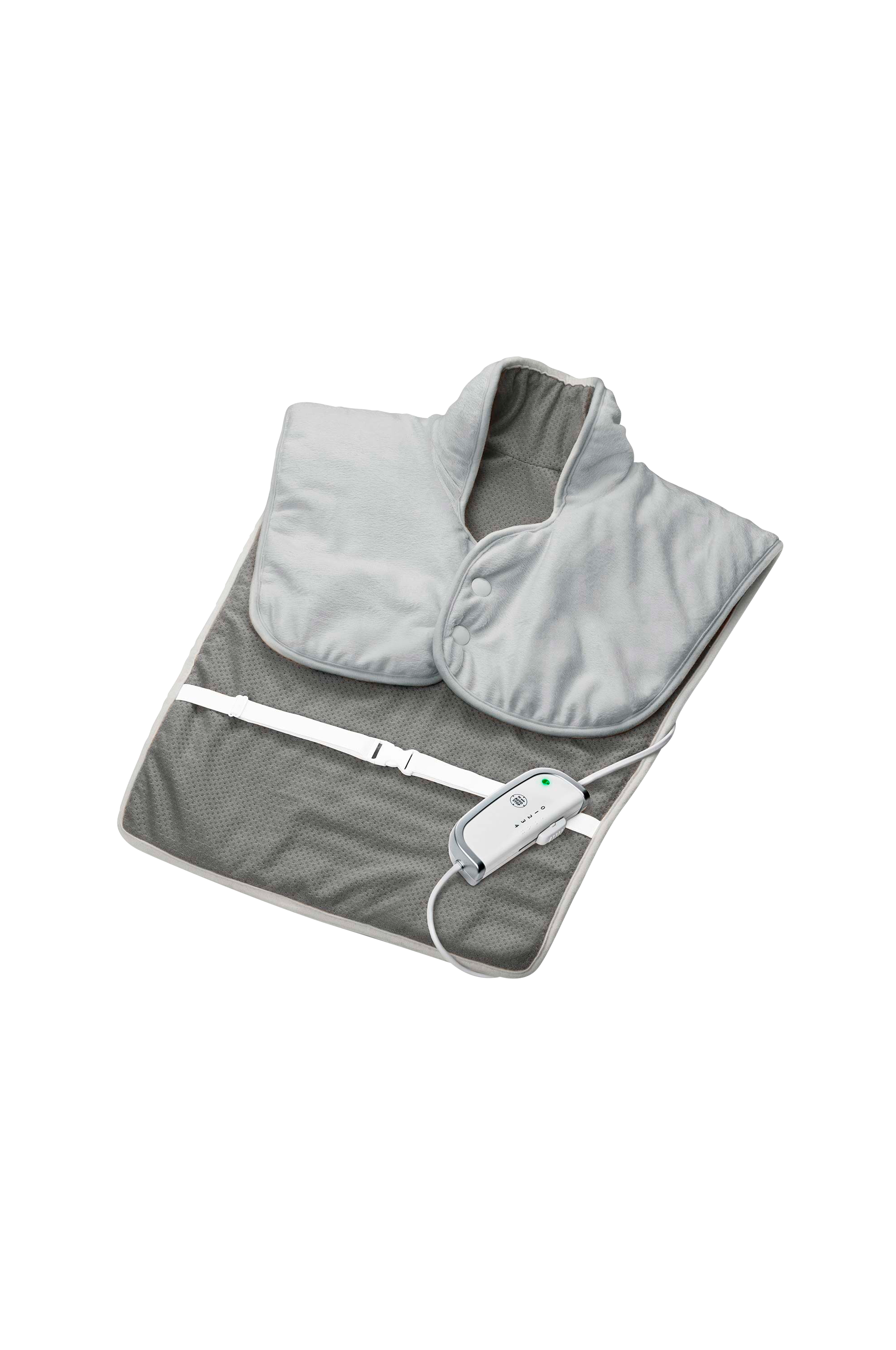 Varmepude til ryg og nakke, der er ekstra høj omkring halsen og lang forneden mod enden af ryggen.