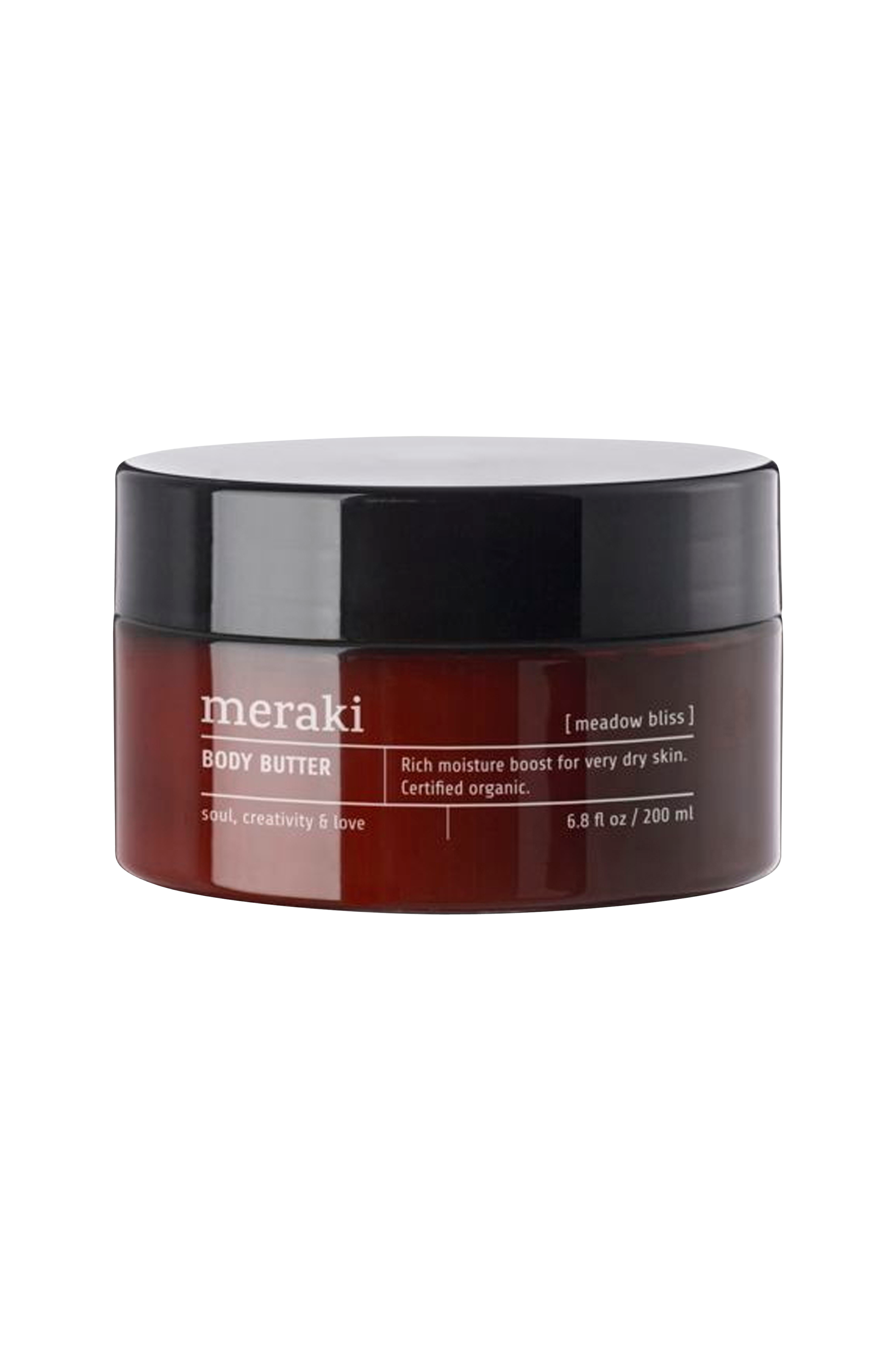 Lindr tør hud med dette økologisk certificerede bodybutter fra Meraki. Aloe vera, sheabutter og en række nærende olier fra oliven, solsikke og mandel giver sammen tiltrængt fugt uden at efterlade huden fedtet. I stedet bliver din hud blød, glat og dybt næret. Bodybutter Meadow Bliss kommer med noter af bitter citrus, træ, verbena og te.