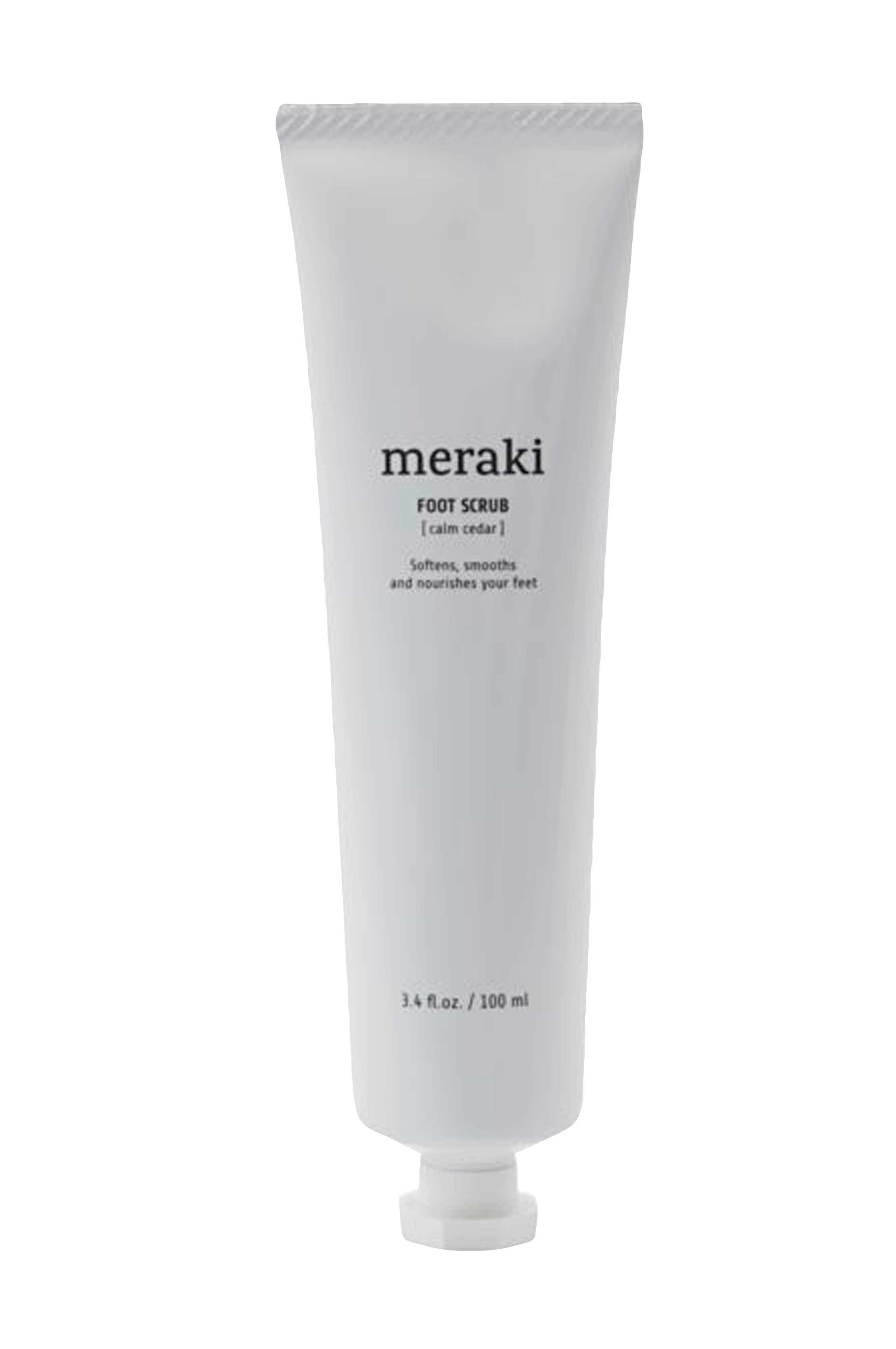 Forkæl dine fødder med denne certificerede, økologiske fodscrub fra Meraki. Et økologisk abrikosgranulat giver din hud en blid peeling, mens økologisk solsikkeolie og mandelolie blødgør. Dine fødder efterlades glatte og velplejede, klar til varme forår og sommerdage, der bedst nydes i sandaler. Hvis det er nødvendigt, kan du blødgøre fødderne i et fodbad først, for at løsne hård hud og derefter bade med et håndklæde. Ellers brug fodscrubben på tørre fødder. Påfør en passende mængde og massér dine fødder og skinneben. Når du skyller, emulgerer skrubben og bliver til en mælkeagtig væske. Nyd et velfortjent øjeblik for dig selv med denne fodscrub med en energigivende duft af eukalyptus, mynte og lime.