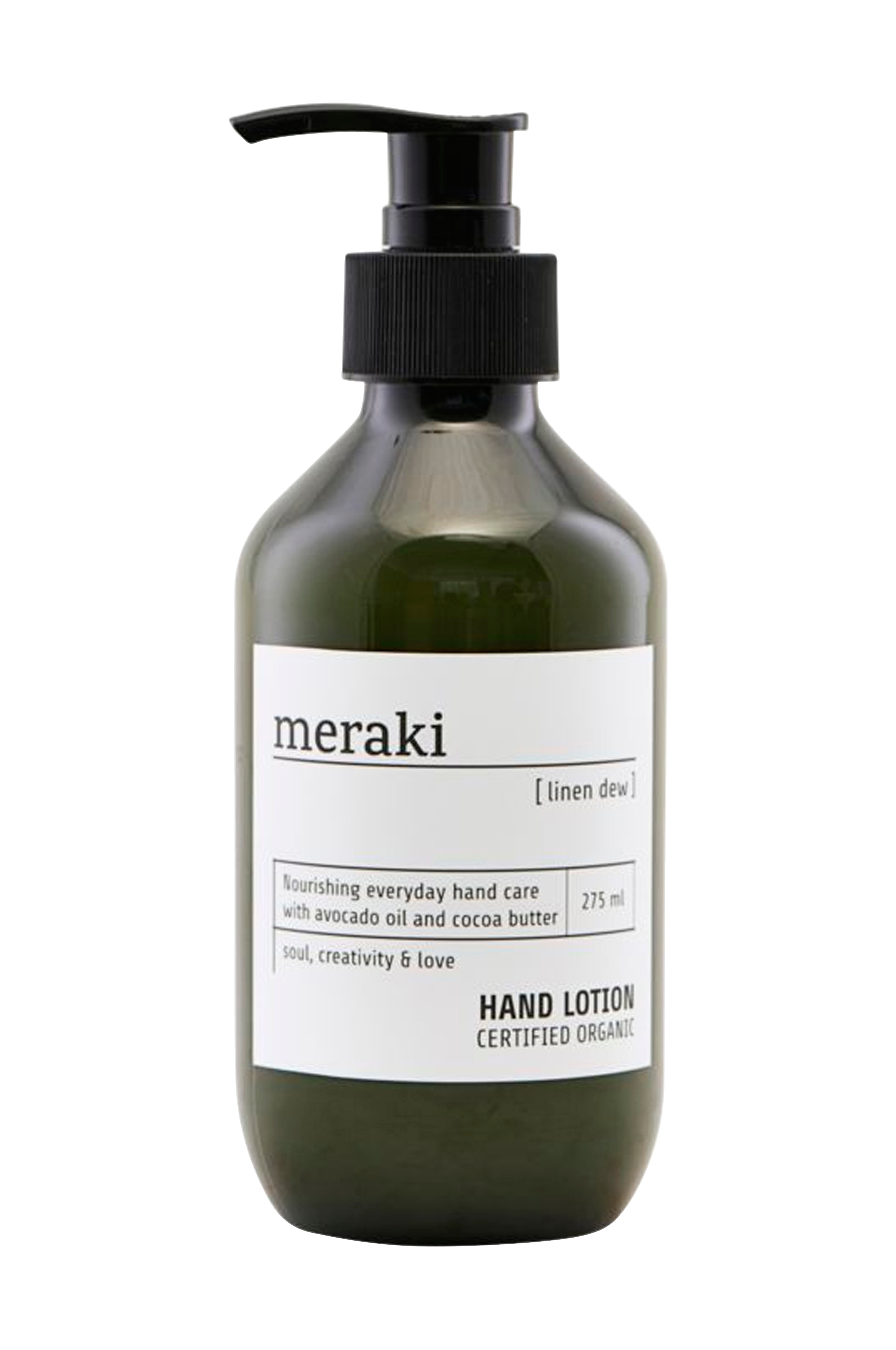 Linen Dew er en certificeret økologisk håndcreme som indeholder økologisk aloe vera, avocadoolie og cocoa butter som plejer, fugter og blødgør hænderne uden at fedte. Håndcremen kan bruges dagligt til alle hudtyper.