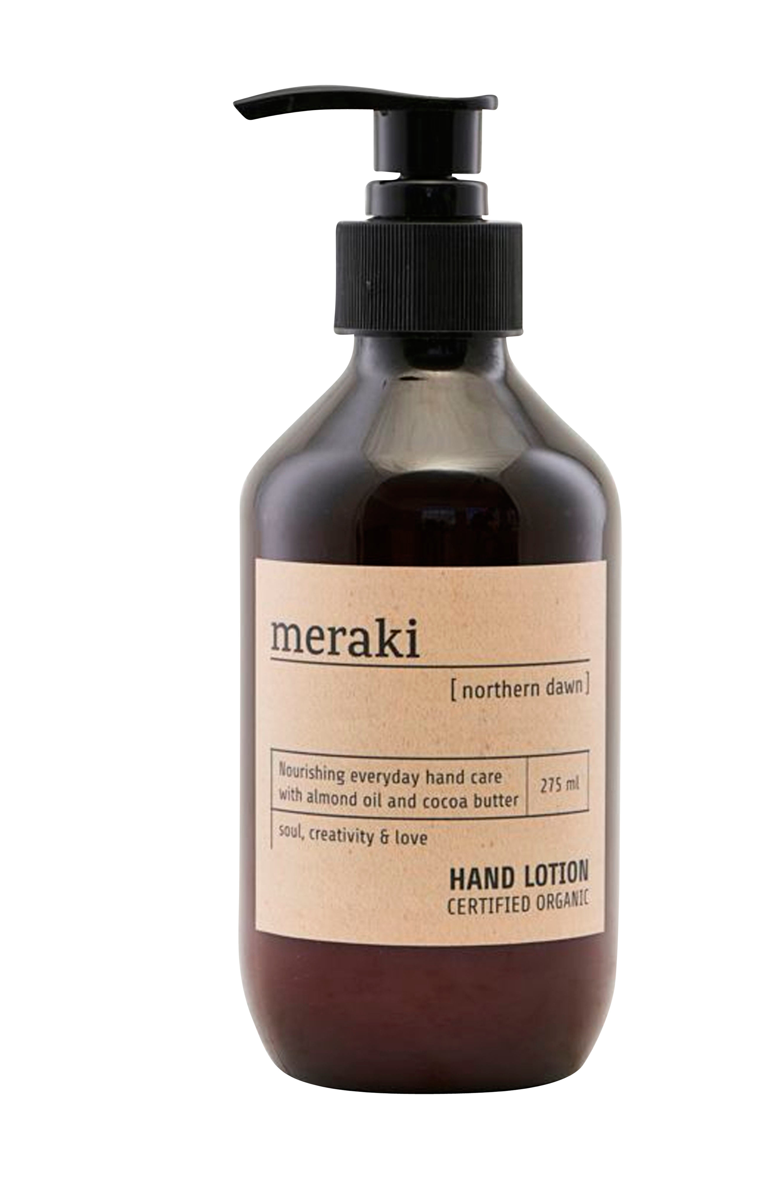 Certificeret økologisk håndcreme til daglig brug som indeholder økologisk aloe vera, mandelolie og kakaosmør som giver hænderne næring, fugt og gør dem bløde, uden at de føles fedtede. Brug håndcremen efter håndvask eller når hænderne har brug for lidt ekstra kærlighed. Håndcremen kommer i en fin flaske som giver dit hjem et dekorativt touch. Kombiner med vægmontering for praktisk opbevaring.