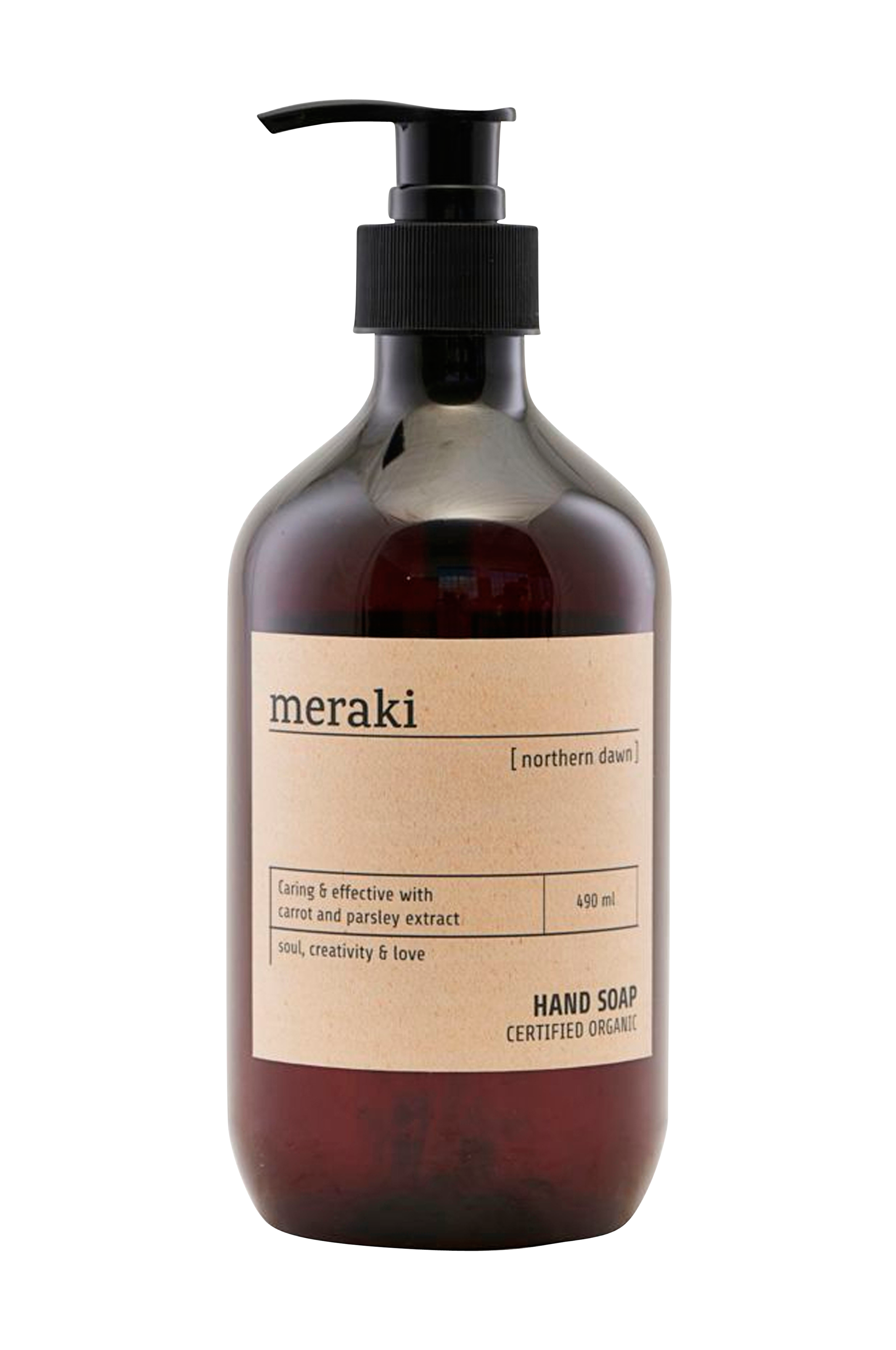 Lad håndsæben være en dekorativ detalje i badeværelset, køkkenet eller bryggerset. Med Merakis certificeret økologiske håndsæbe, Northern Dawn, får du en næringsgivende og fugtgivende sæbe til hænderne, som indeholder ekstrakt af gulerod og persille samt økologisk aloe vera. Sæben passer til alle hudtyper og er egnet til daglig brug. Den efterlader hænderne velduftende og rene. Pump en passende mængde sæbe ud, og vask hænderne. Skyl grundigt med vand. Kombiner med vægmontering for praktisk opbevaring.