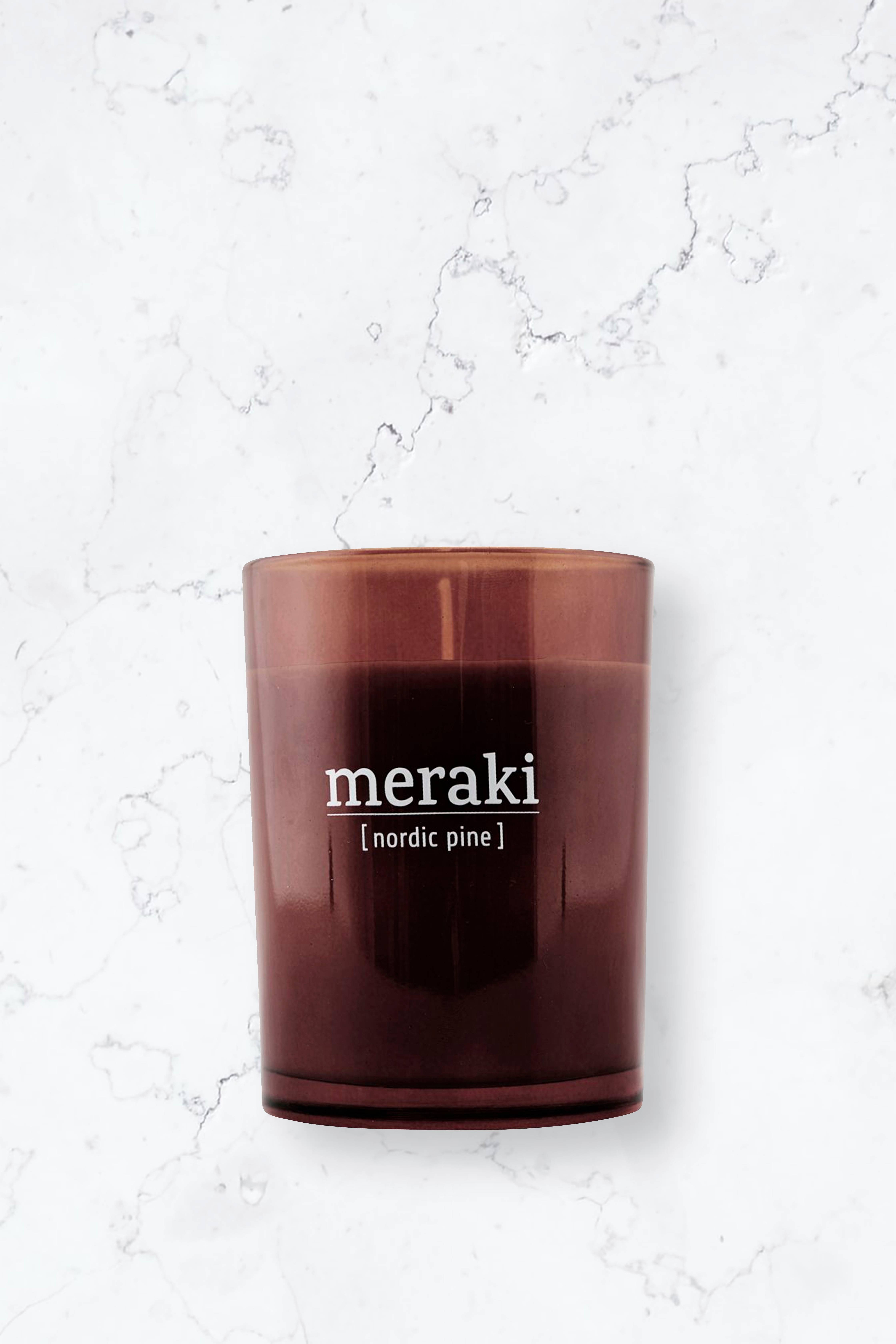 Skab en hyggelig atmosfære med et elegant duftlys. Nordic Pine fra Meraki er baseret på olie fra sojabønner og soder derfor væsentligt mindre end almindelige stearinlys. Nyd en vidunderlig duft og en fin indretningsdetalje. Lyset har en brændetid på 35 timer.Dette produkt kan forårsage allergisk hudreaktion.