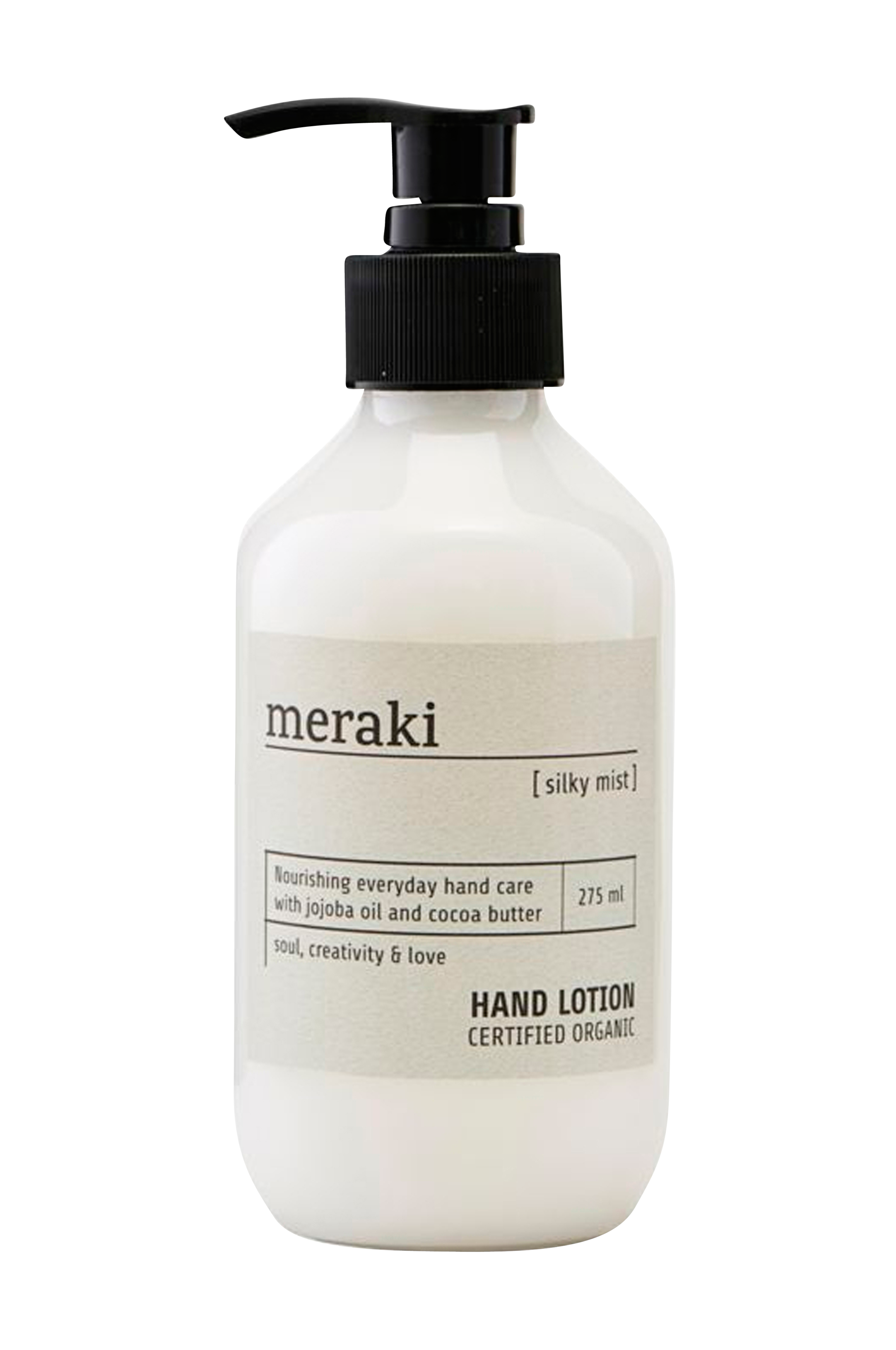 Plej dine hænder med en plejende håndcreme som både fugter og gør dine hænder bløde. Denne certificeret økologiske håndcreme, Silky mist fra Meraki er perfekt at bruge efter håndvask eller når hænderne har brug for lidt ekstra omtanke. Med sin fine flaske og størrelse er den ideel at have stående ved håndvasken ved siden af sæben. Vores håndcreme indeholder økologisk aloe vera, jojobaolie og kakaosmør. Velegnet til alle hudtyper. Kombiner med vægmontering for praktisk opbevaring.