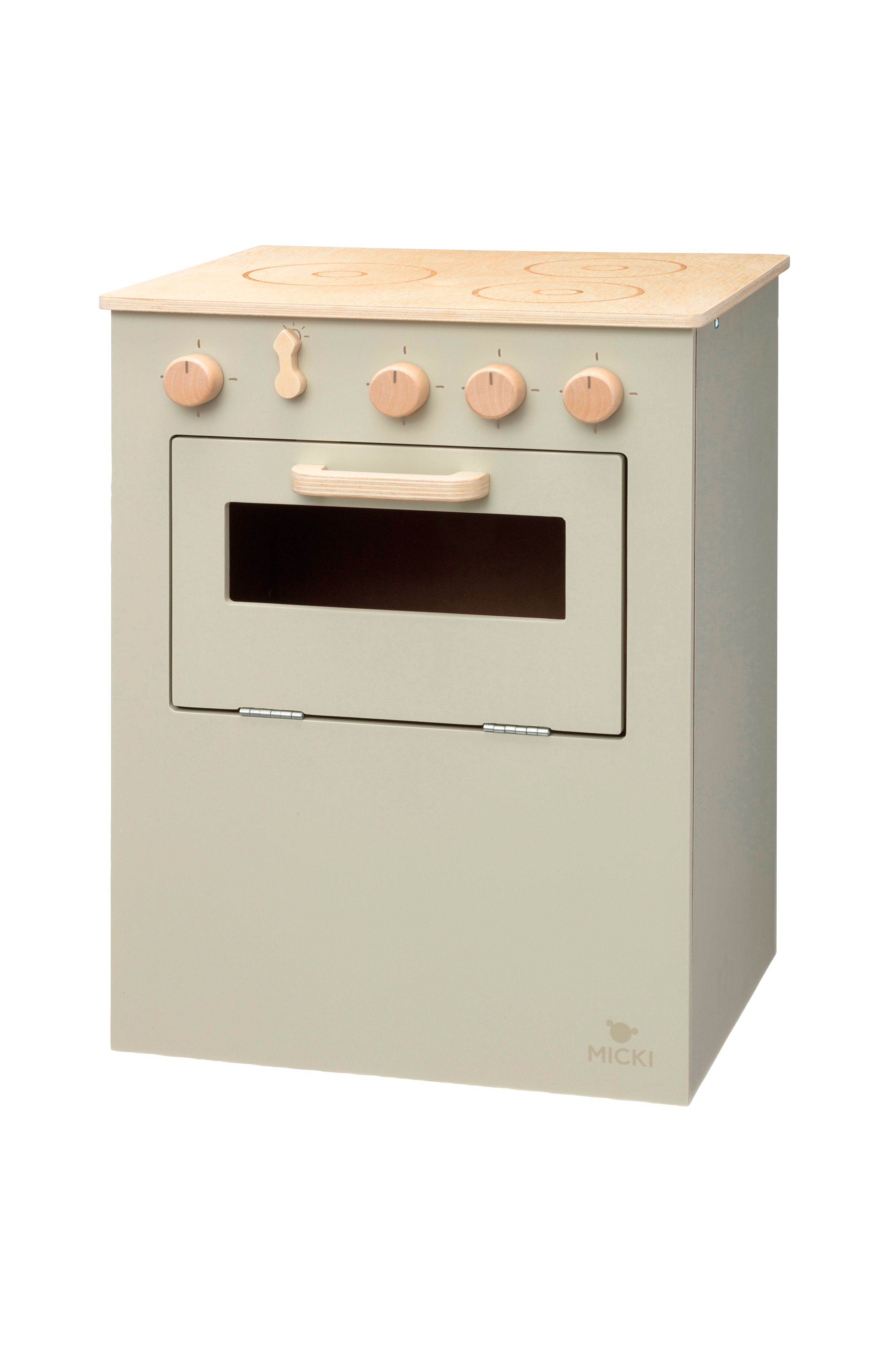 Det flotte komfur har indgraveret detaljer i legende illustrationer på kogepladens tre kogeplader. Ovnlågen kan åbnes og har drejelige, træknopper med en legende klikfunktion. En fremragende legetøjskomfur til alle de små mesterkokke derude, som gerne vil starte deres kulinariske rejse!