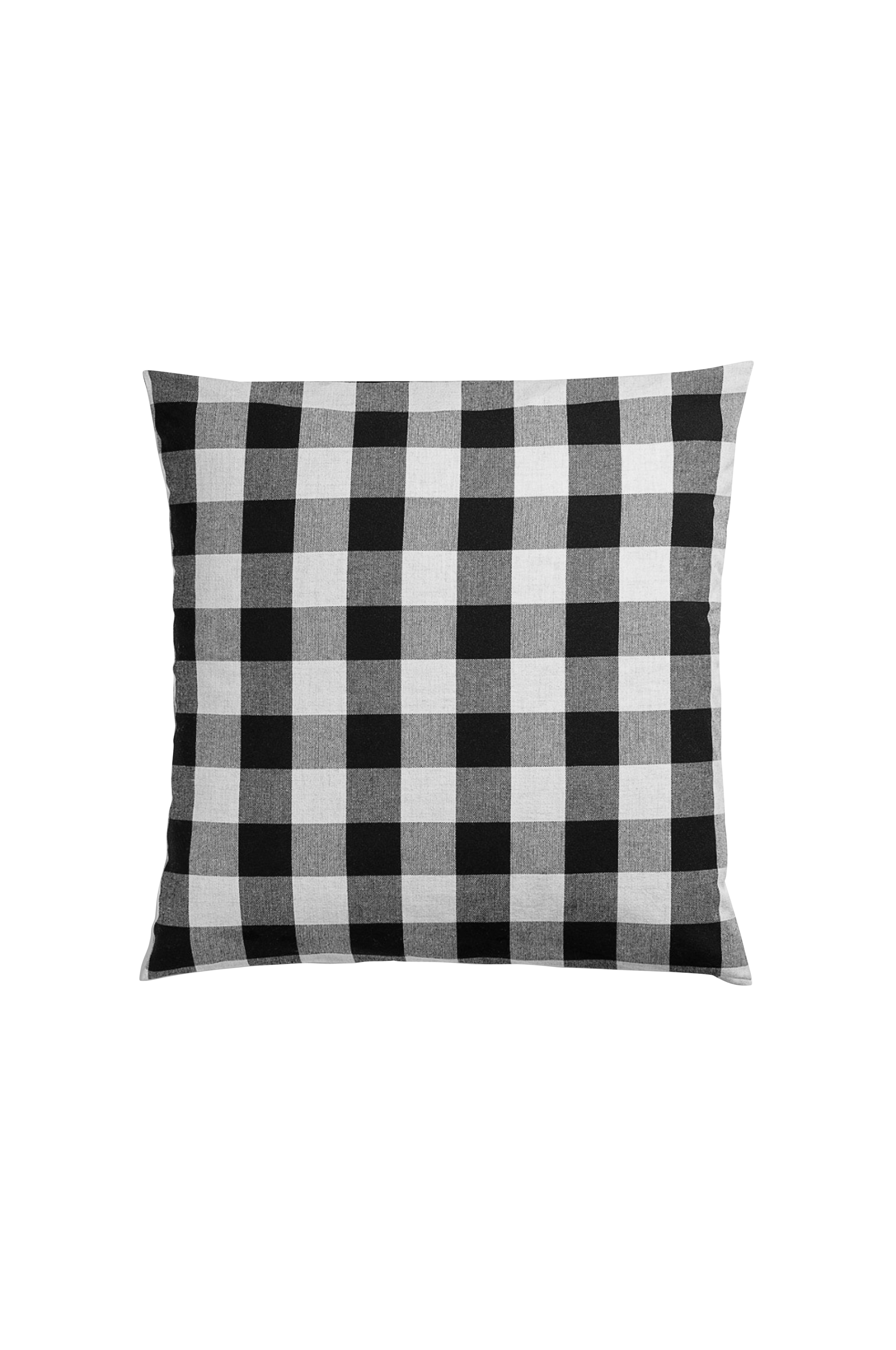 Disse pudebetræk fra det svenske mærke Midnatt fås i to størrelser, 50×60 cm og 50×50 cm, og i tre farver. Brug dem til at dekorere dit soveværelse eller din stue. Det ternede stof er lavet af genanvendt bomuldsgarn, der er fremstillet af affaldsprodukter fra den indiske tekstilindustri.