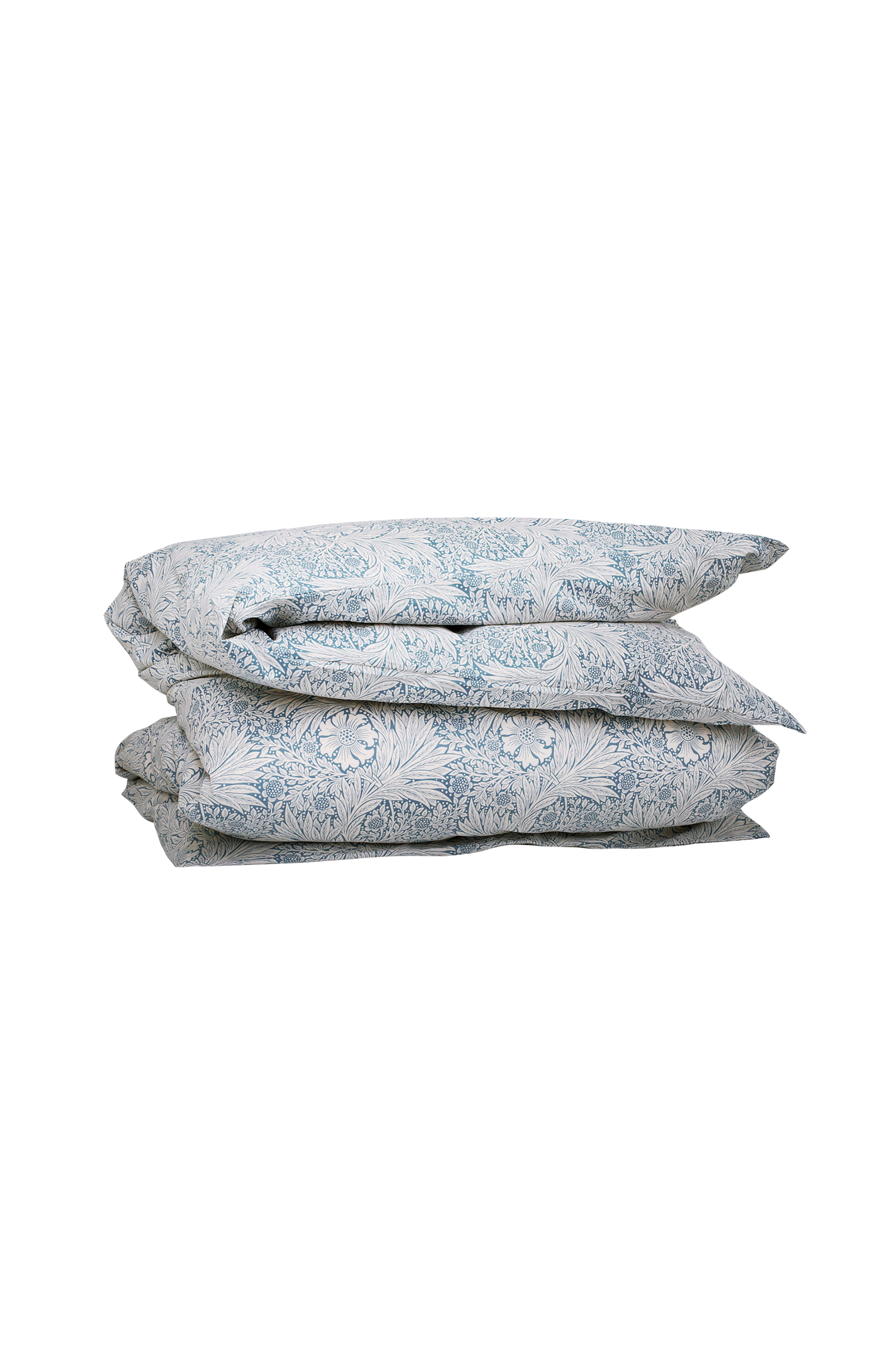 Et designsamarbejde mellem Morris & Co. X Mille Notti. Dynebetræk i sprød percale fremstillet af finkæmmet bomuld. Trådtæthed 300 tc. Trykt med det smukke, hvirvlende Marigold blomstermønster, som blev skabt tilbage i 1875 af den berømte mønsterdesigner William Morris. Lukning i kanten forneden. Fremstillet i Portugal. STANDARD 100 by OEKO-TEX® Vaskes ved eller under 60 °C. Tåler ikke blegemiddel. Hængetørres. Stryges ved høj temperatur. Tåler ikke kemisk rens. Undgå at stryge eller rulle over knapperne.