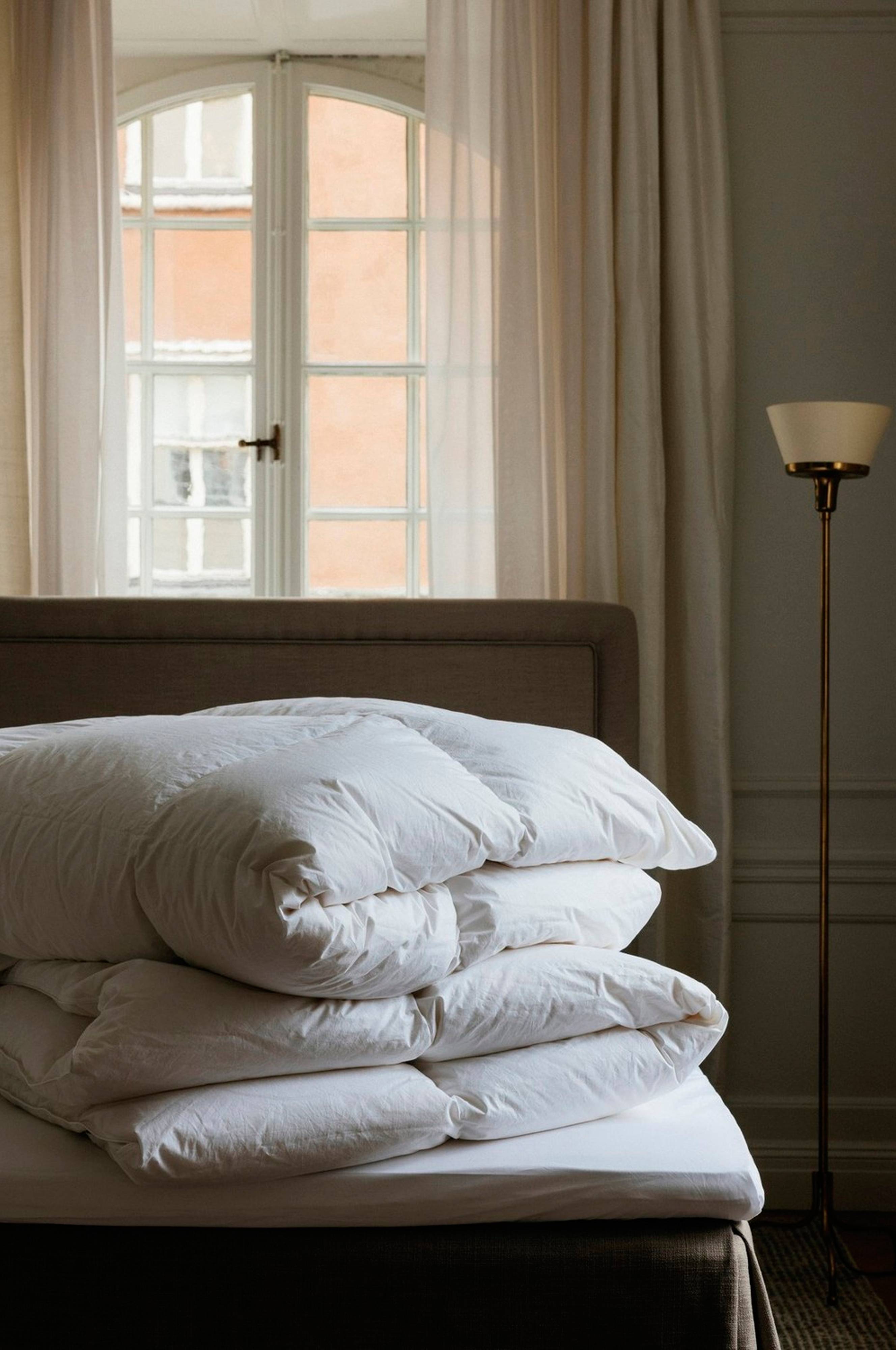 Dyne fyldt med hvide gåsedun. Europæisk klasse 1 dun. 90% gåsedun og 10% gåsefjer. Stof i hvid, duntæt bomuldscambric, 280 tc, syet med piping. Syet med mellemvægge. Alle dynerne har en bæreevne på 10+. Dynen er pakket i en stoftaske. Öko Tex Standard 100. Anbefalet af Astma og Allergiforbundet. Certificeret af IDFL for at garantere, at dunene ikke er plukket fra levende fugle samt at der ikke er forekommet tvangsfodring under opdræt af fuglene. Fremstillet i Polen. Rengøring: Luftes og rystes hyppigt. Vaskes på 60°. Tørretumbles ved middelvarme til dynen er helt tør. Vi anbefaler, at dynen tørretumbles sammen med et par tennisbolde , så du undgår at dunene klumper sammen under tørring.