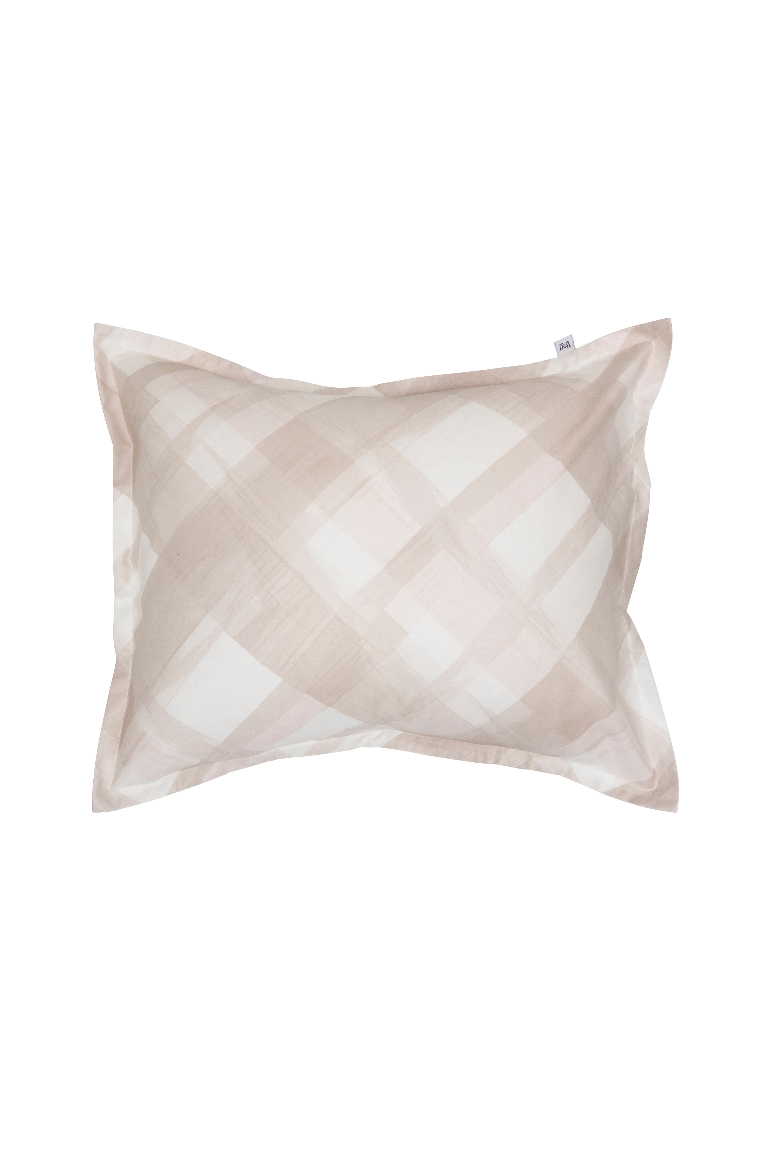 Pudebetræk i silkeblød satin af finkæmmet bomuld. Trådtæthed 340 tc. Printet med håndmalede diagonale tern. Syet med 2 cm vinge og overlapning på bagsiden. Fremstillet i Portugal. STANDARD 100 by OEKO-TEX®. Rengøring: Vaskes ved 60°. Undgå vaskemiddel med blegemiddel. Hængetørres. Stryges ved høj varme for at få stoffets flotte glans frem.