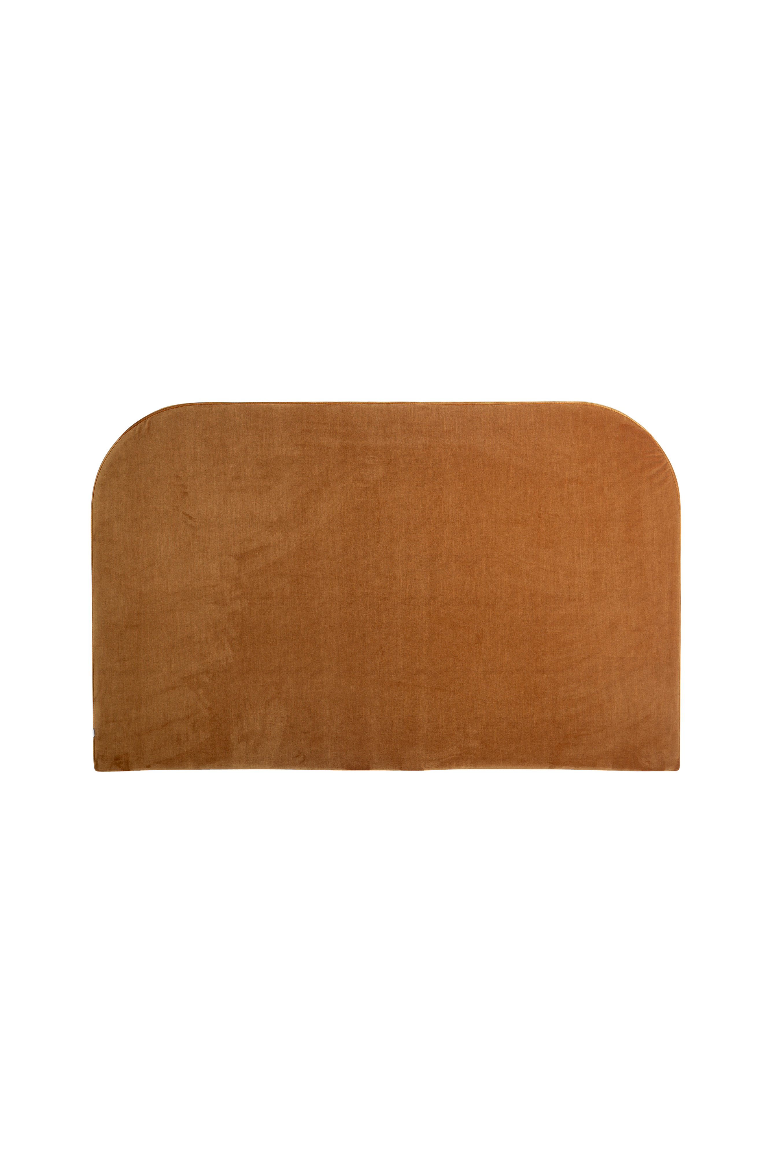 En stilren, lidt lavere sengegavl med blødt afrundede hjørner, beklædt i velour (100% polyester) som giver en fin glans. Højde: 100 cm. Leveres med 3 cm høje dupper.