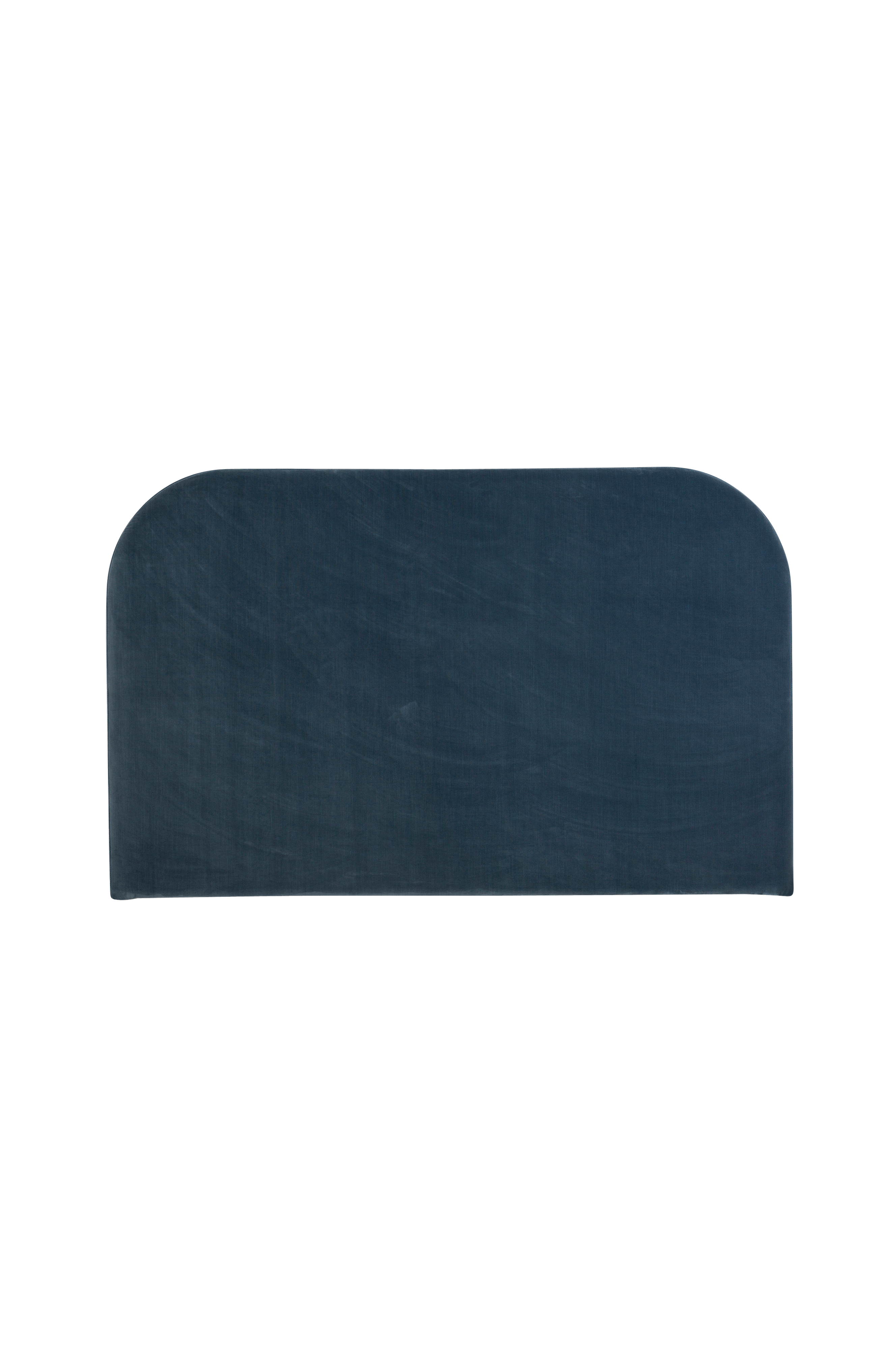 En stilren, lidt lavere sengegavl med blødt afrundede hjørner, beklædt i velour (100% polyester) som giver en fin glans. Højde: 100 cm. Leveres med 3 cm høje dupper.