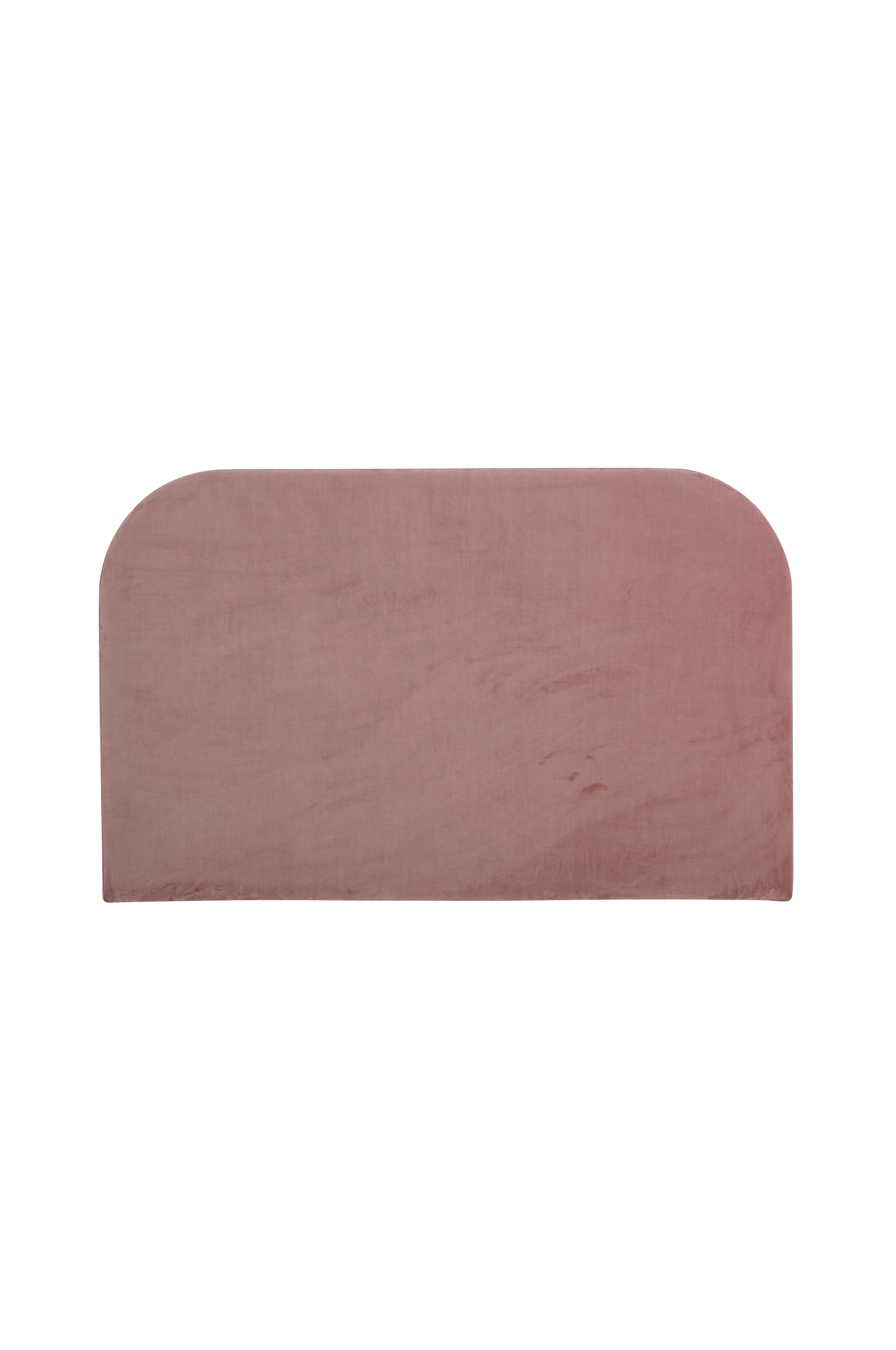 En stilren, lidt lavere sengegavl med blødt afrundede hjørner, beklædt i velour (100% polyester) som giver en fin glans. Højde: 100 cm. Leveres med 3 cm høje dupper.