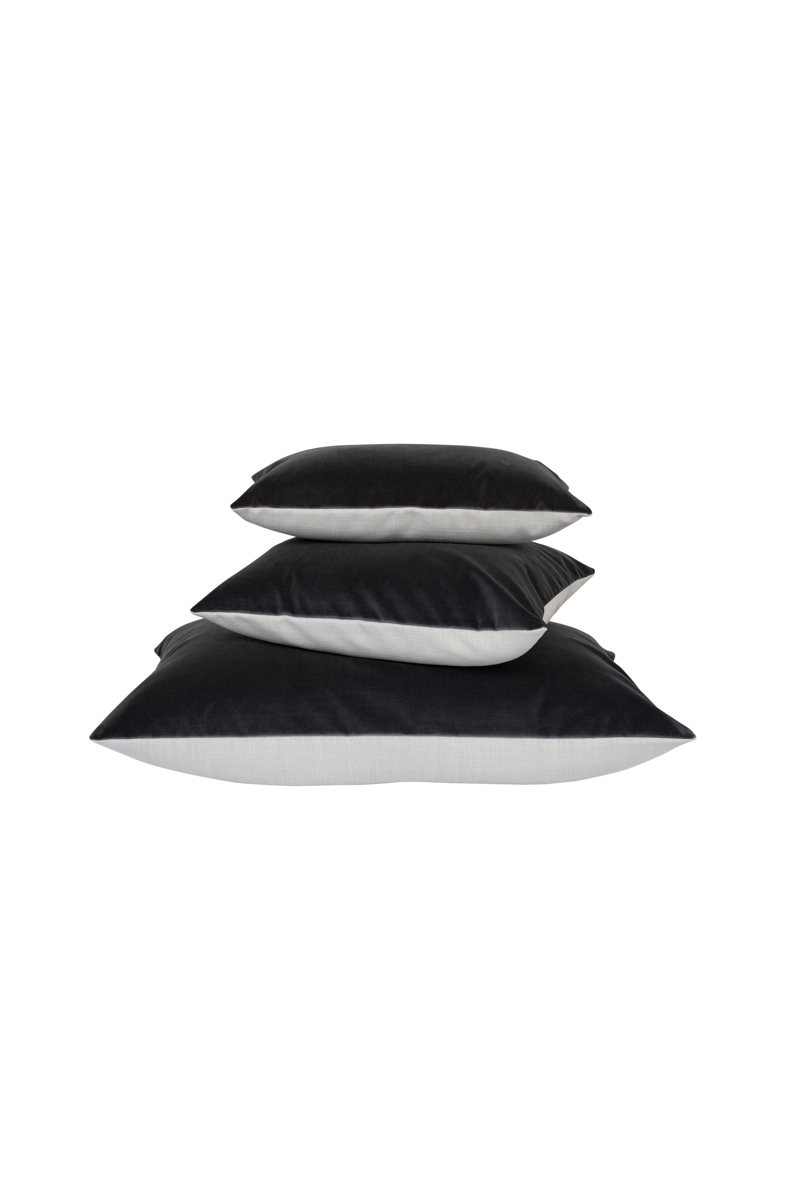 Pudebetræk i velour. Velourstof af 100% polyester. De rektangulære har elfenbensfarvet stof i hørstruktur (70% polyester, 20% hør, 10% bomuld) på bagsiden. Åbning med lynlås. Fremstillet i Portugal. Monteringspude med fyld af fjer kan købes separat. Vaskeanvisning: Kemisk rens.
