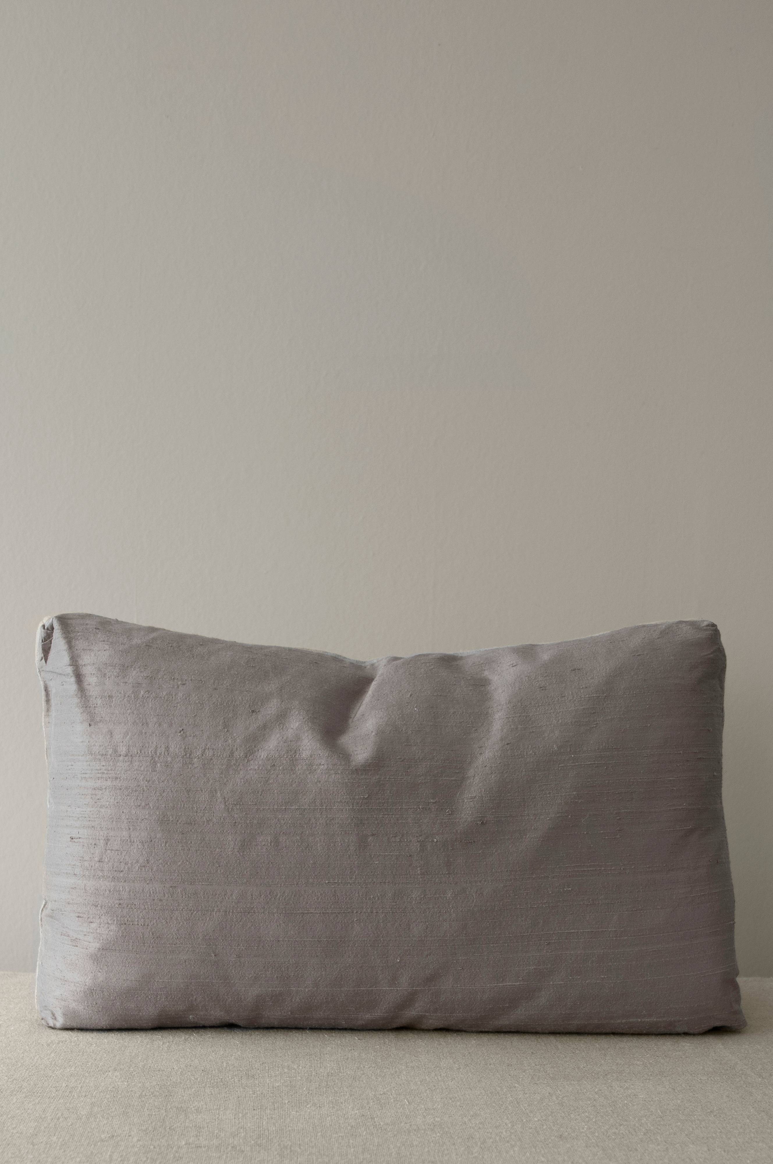 Dekorativ pude som er syet i boxmodel med håndvævet silke på forsiden og tykt hørlærred på bagsiden. Inklusiv velfyldt monteringspude af andefjer. Alle Mimous monteringspuder er Oeko-Tex® certificerede, har bomuldsbetræk, fyldt med andefjer blandet med ca. 10% andedun. Betræk: Forside 100% silke, bagside 100% hør. Monteringspude: Bomuldsbetræk fyldt med andefjer, Oeko-Tex certificeret. Vedligeholdelse: Kemisk rens eller håndvaskes forsigtigt i koldt vand. Størrelse 40x60 cm.