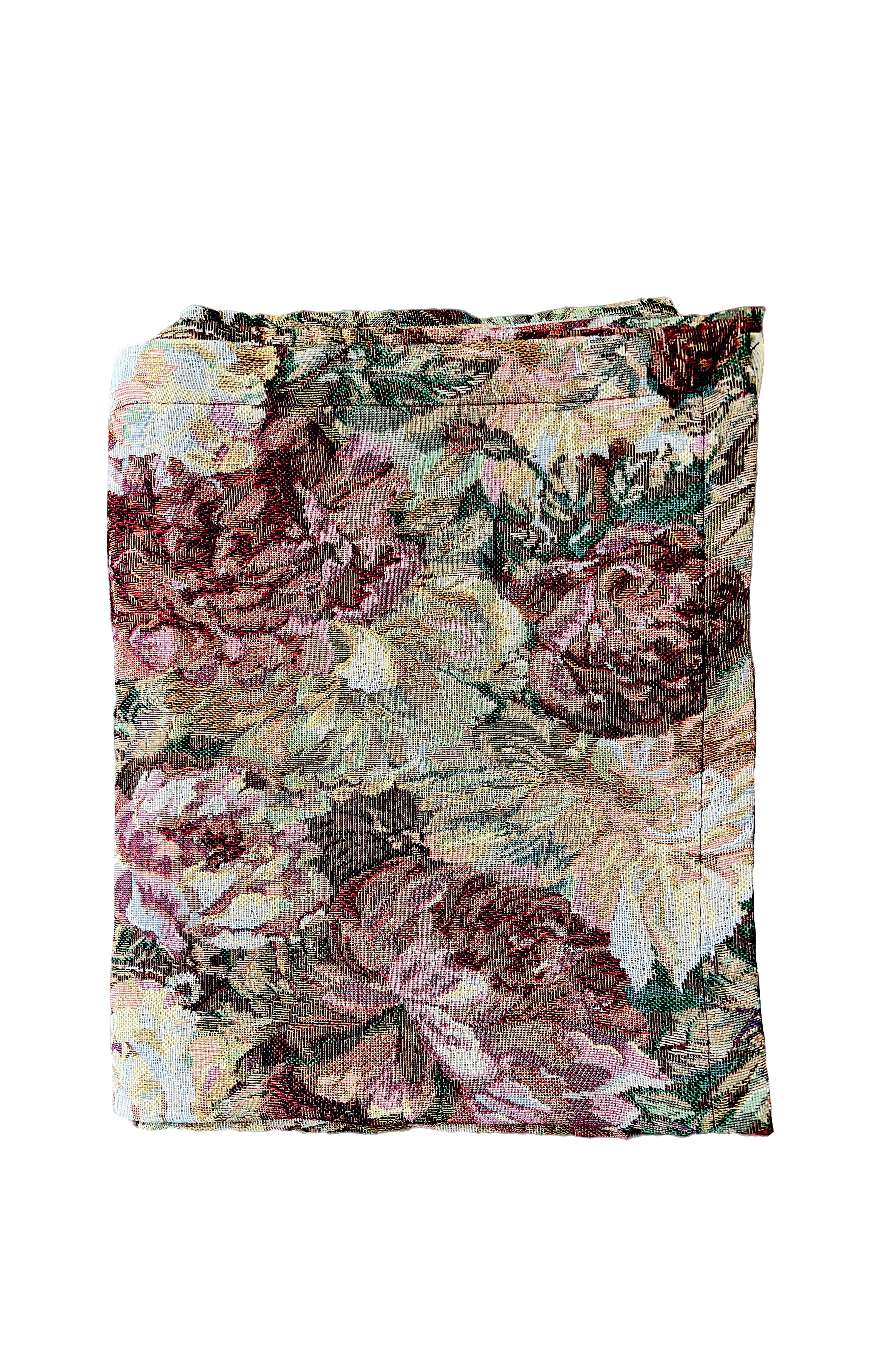 Håndlavet dug skræddersyet af overskudsstoffer fra tøjindustrien. Denne brocade dug er også vidunderlig at bruge som sengetæppe eller til at drapere på din sofa eller lænestol. At genbruge materialer i stedet for at fremstille nye er et mere bæredygtigt valg og et skridt i retning af at reducere tekstilaffald. Materiale: 100% polyester Størrelse: Ca. 140X250 cm. Vask: 40 grader skånsom maskinvask. Stoffet kan tørretumbles, men bør tages ud af tørretumbleren, når det er let fugtigt.