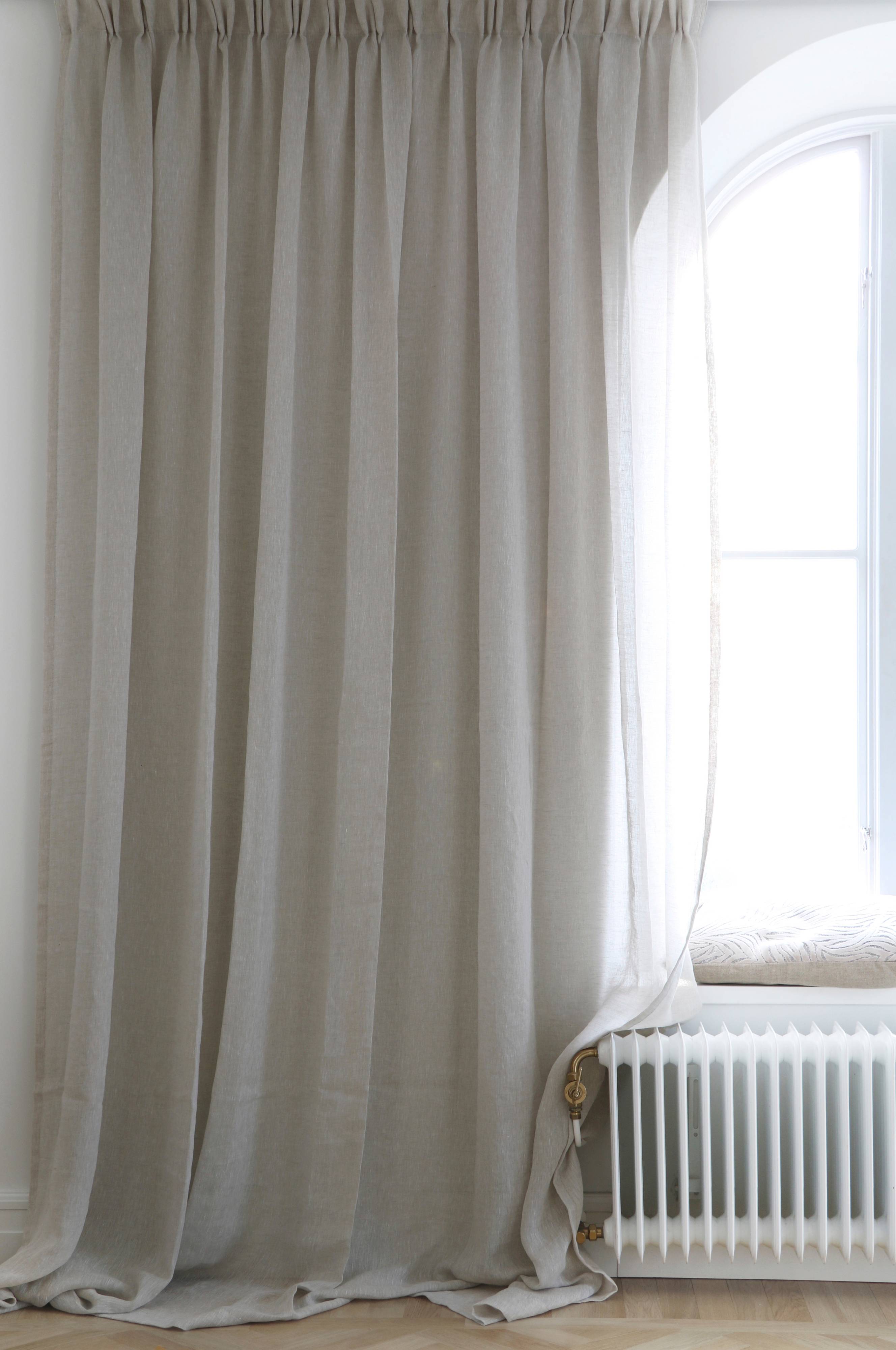 Gardinlængde i hørlærred med rynkebånd. 293 cm bred, hvilket gør at den passer både i almindelige vinduer og i store vinduespartier. Gardinet falder smukt og har en chambrayvævet overflade, som lader lyset sive ind. Gardinet har et skræddersyet look med klassiske, usynlige sidesømme og dobbelt oplæg forneden, så det får den rigtige tyngde. Fingerkrogsophæng passer til alle skinner med glidere og almindelige gardinstænger med gardinringe og stropper. 4-fingerkrog medfølger til hver gardinlængde med rynkebånd. 4-fingerkrog anvendes til at skabe flotte folder i gardinet, som giver et velsyet indtryk og lader gardinerne komme til deres ret. Stoffet er OEKO-TEX® Standard 100 certificeret, det vil sige at produktet er testet for at sikre, at det ikke indeholder sundhedsskadelige stoffer. 30 grader skånsom maskinvask eller kemisk rens. Bredde 293 cm. Gardinet findes i højde 250 cm og 290 cm. Sælges stykvis.