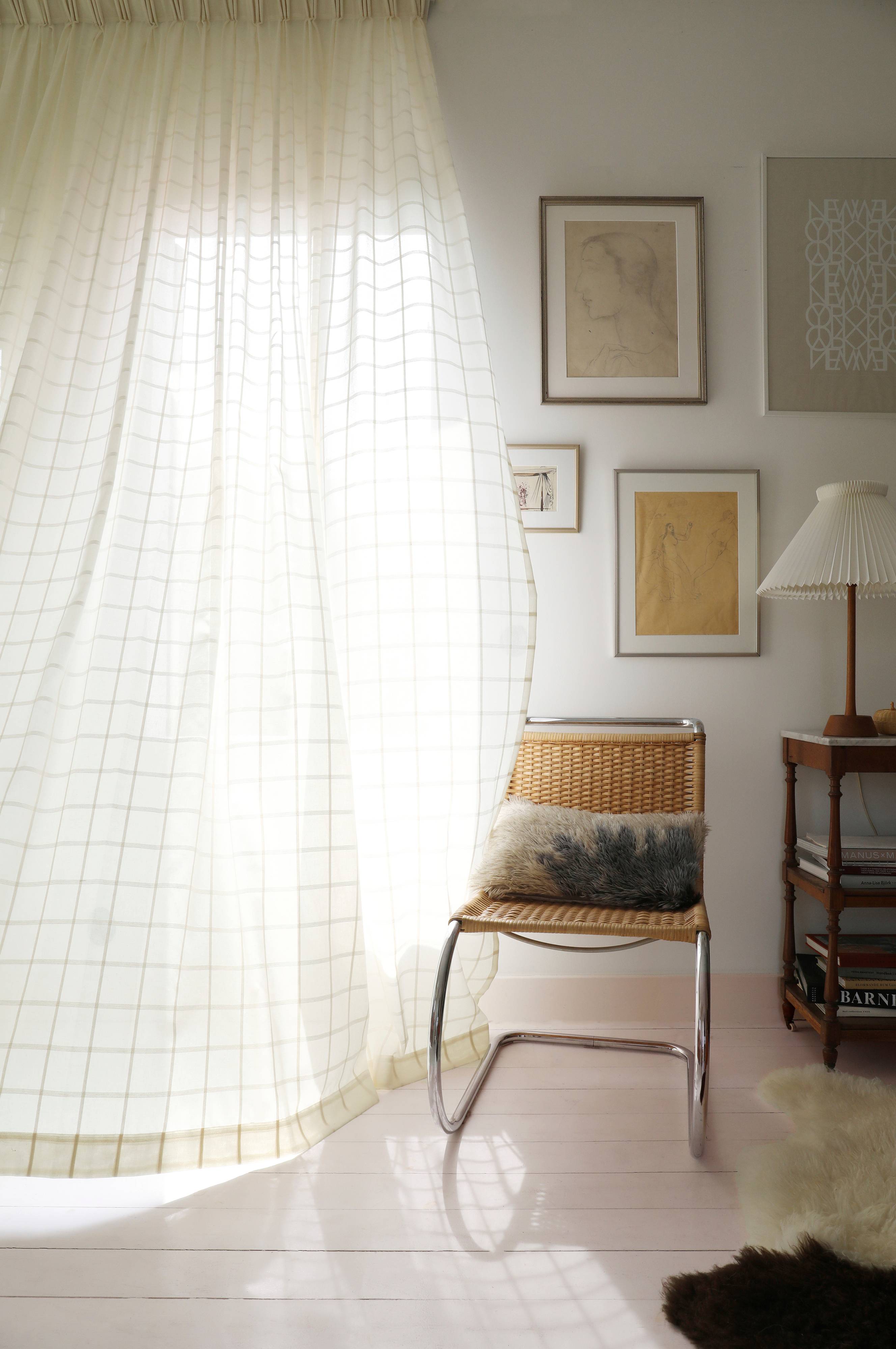 Ekstra bredt gardin med rynkebånd af et ternet stof i genindvundet bomuld og polyester med smuk struktur. Gardinet har et skræddersyet look med klassiske, usynlige sidesømme og dobbelt oplæg forneden, så det får den rigtige tyngde. Stoffet er OEKO-TEX® Standard 100 certificeret, det vil sige at produktet er testet for at sikre, at det ikke indeholder sundhedsskadelige stoffer. 30 grader skånsom maskinvask eller kemisk rens. Bredde: 290 cm Findes i tre højde: 250, 270 og 290 cm. Materiale: 50% bomuld, 50% polyester. Sælges stykvis.