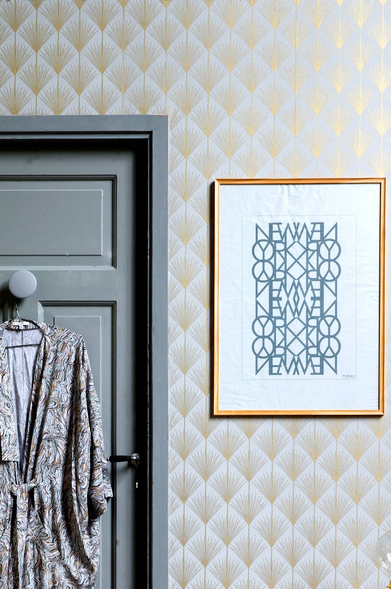 Poster af sart håndlavet papir af bambus med håndprintet grafisk mønster. Det smukke print er et fint håndværk og hver poster er unik. 100% bambus. Størrelse 50x70 cm.